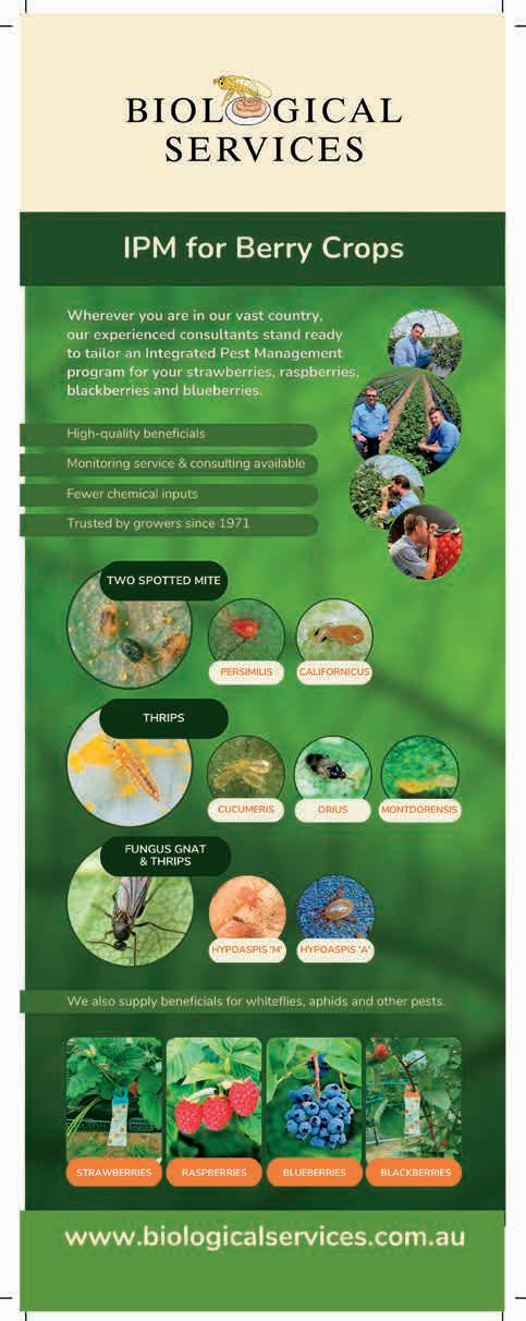 At the time of writing, the Berry Prioritisation Panels are meeting to review recommendations from the Berry Ideation Panel. These include proposed R&D investments aimed at maintaining industry access to essential crop protection tools particularly permits for newer chemistries that support Integrated Pest Management (IPM). Outcomes from this round of industry advice will be reported in the next journal edition.