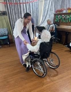 As well as the musicians, a professional dance duo attended and delighted all with their lively steps. Several residents took to the dance floor, whilst others tapped and sang along.