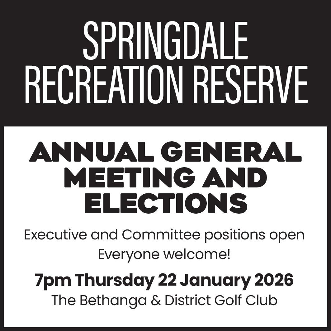 The purpose of the meeting is to nominate no less than three (3) and no more than nine (9) persons as the Committee of Management for the Bethanga Soldiers Memorial Hall Reserve for a term of three (3) years. The current committee’s term will expire on 14 January 2026. All positions will be declared open and nominations will be accepted prior to or on the night. Nominations from women, Aboriginal people, people with disabilities, young people and people from culturally diverse backgrounds are encouraged.