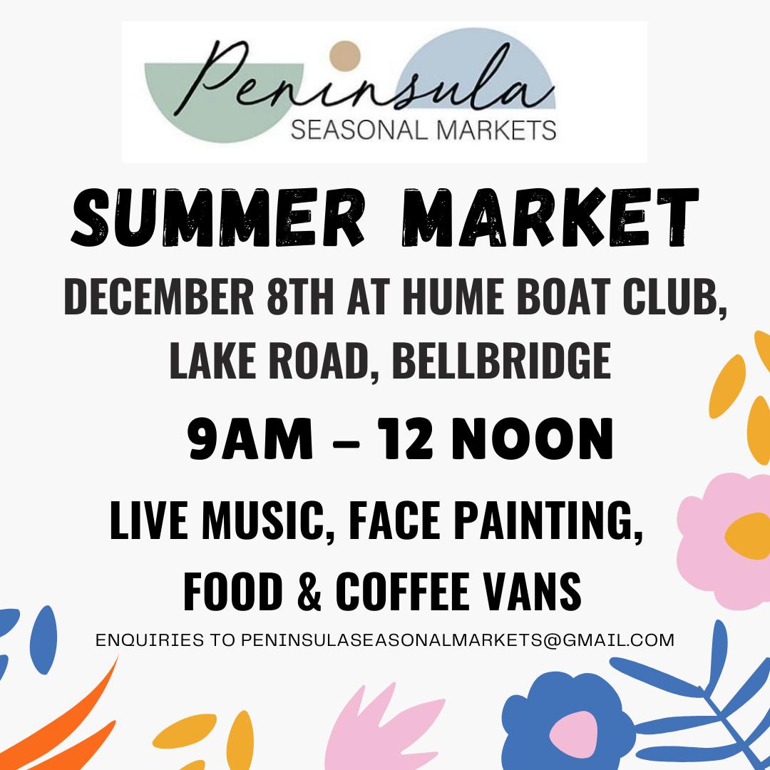 Unfortunately the committee for the Peninsula Seasonal Markets and myself have had a few challenges getting a meeting and market organised for this Christmas. Thankyou so much to those who expressed an interest in joining the committee.
