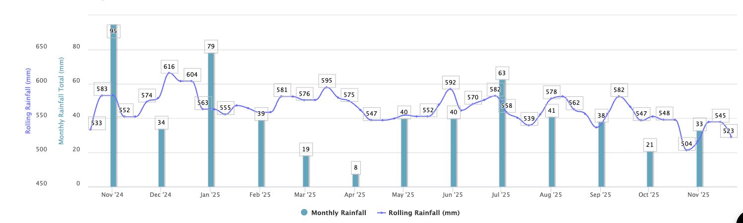 Recent weather has been warmer and drier than average, with rain still much needed.