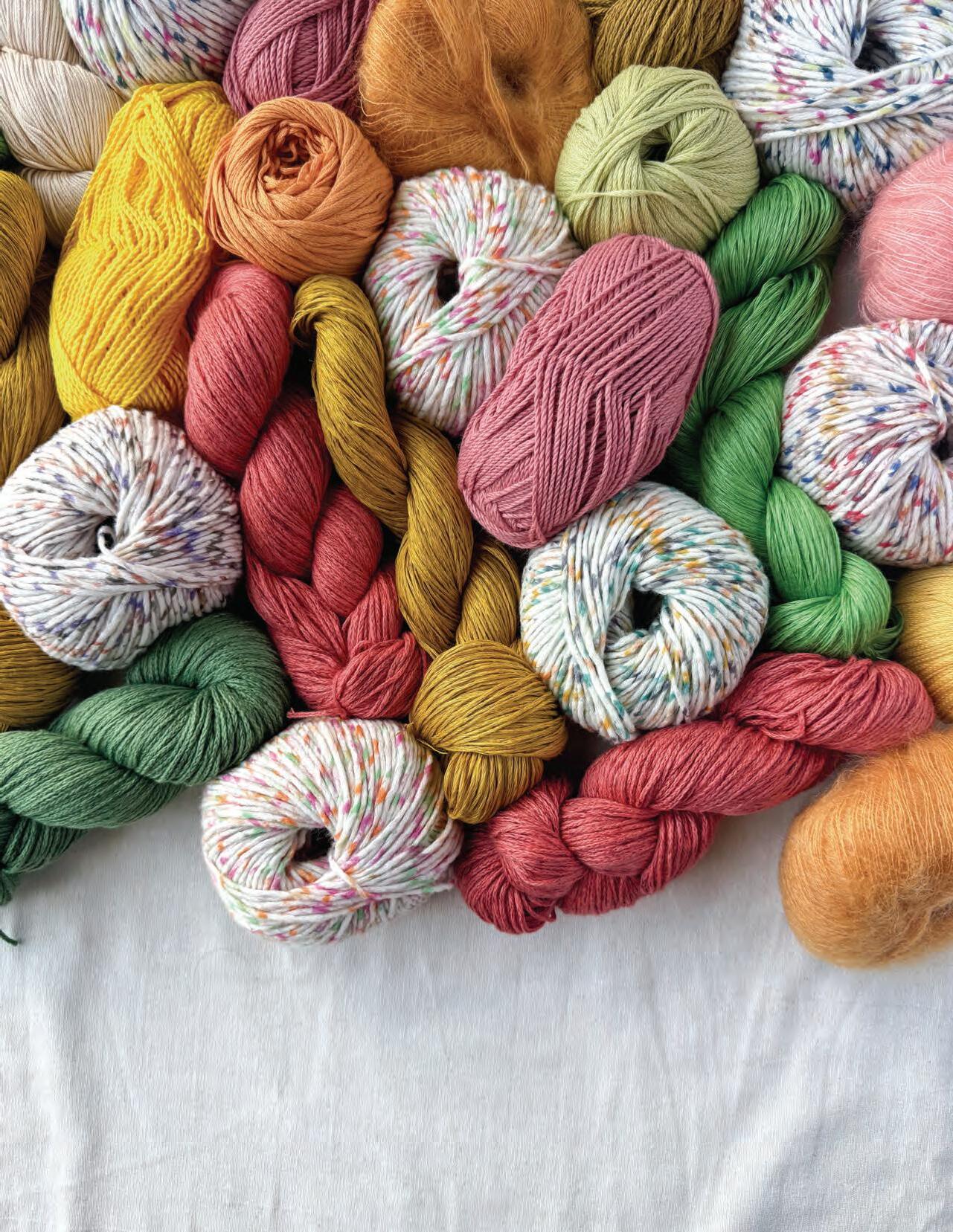 100% Linen | 273 yds per 100 g hank | 4.75–5 sts = 1" on size 5–6 / 3.75–4 mm needle | Made in Italy continued on next page