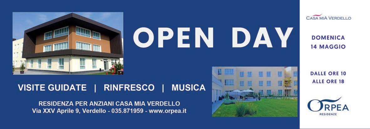 re un appuntamento per una visita guidata. Inoltre, Casa Mia Verdello aspetta chiunque sia interessato il 14 maggio, dalle 10 alle 18, per far conoscere una realtà ancora poco nota e spesso sottovalutata come quella delle RSA. Durante la giornata, oltre alle visite guidate ci saranno intrattenimenti musicali e sarà presente la postazione per la vendita delle Azalee in occasione della Festa della Mamma a sostegno della ricerca di AIRC» dice il direttore Egidio Passera.