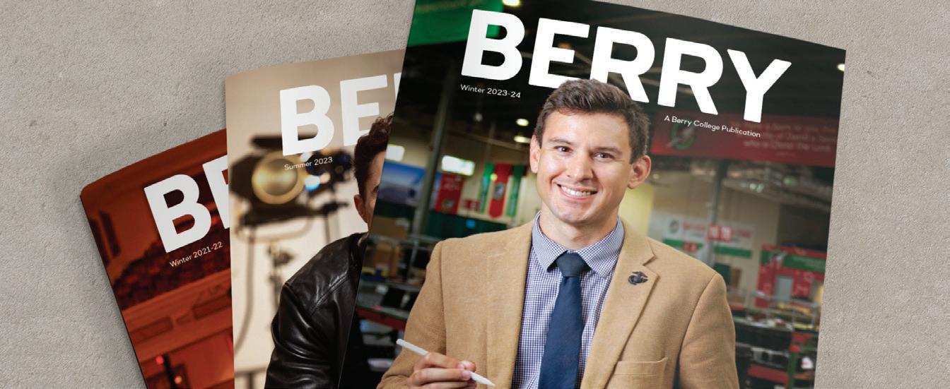 Editorial: email rwoodall@berry.edu or mail to Berry magazine, c/o Dawn Tolbert, P.O. Box 490069, Mount Berry, GA 30149