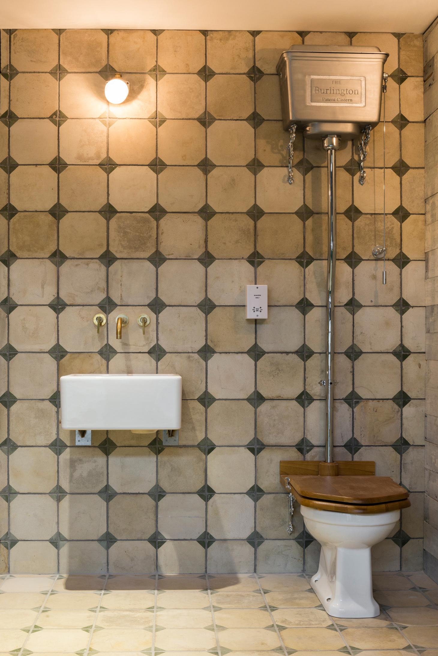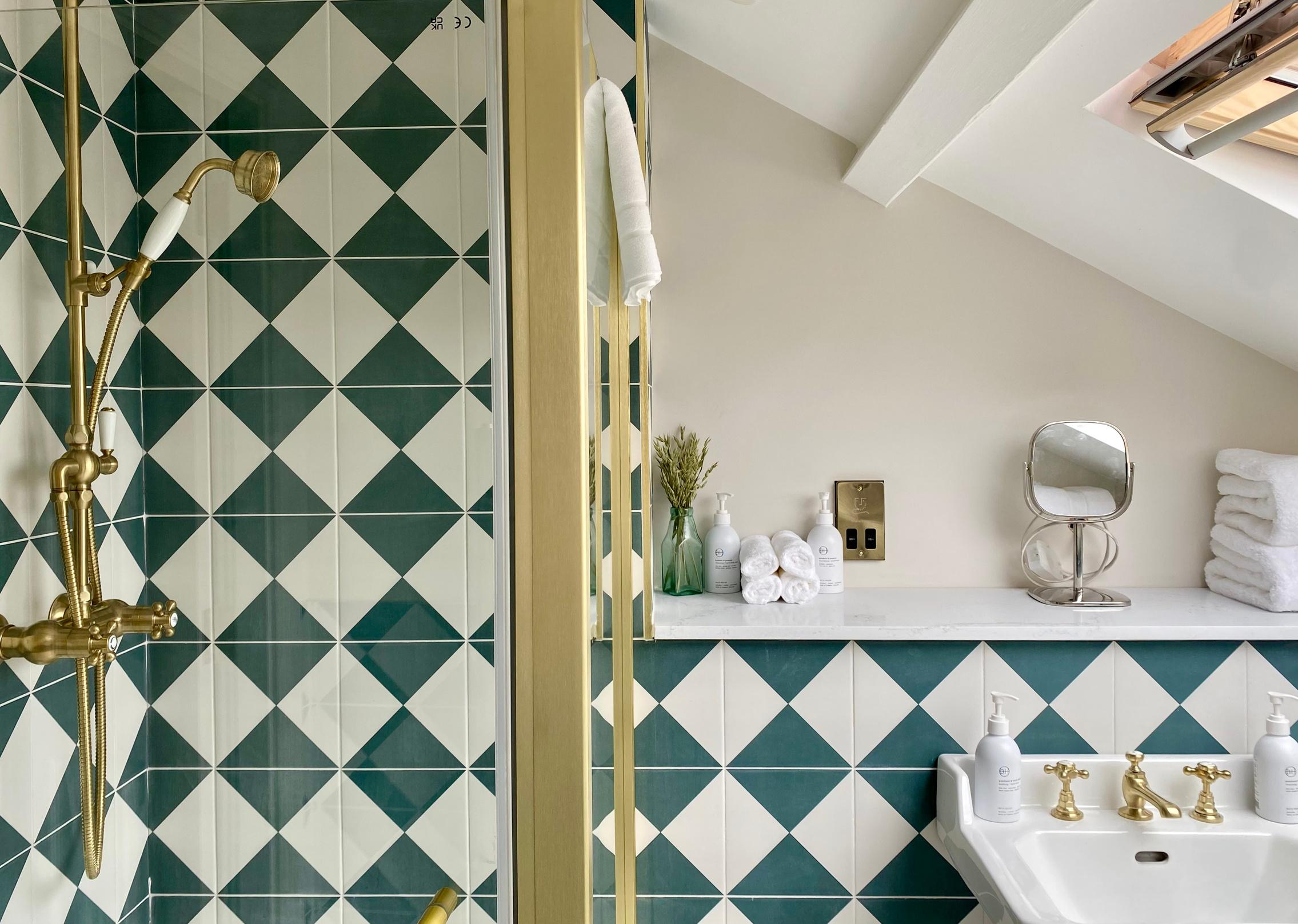 Green Alalpardo encaustic tile used in the bathroom & Monserraz tiles for the bar area