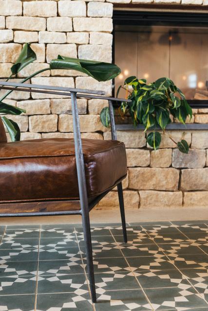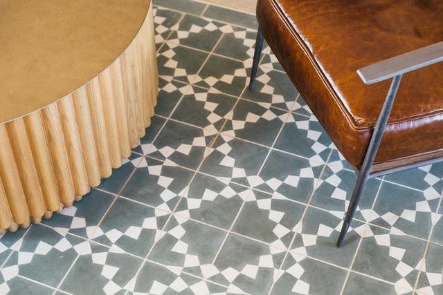 Bejmat tiles hardwearing encaustic tile and gives the look of reclaimed, used on the floor