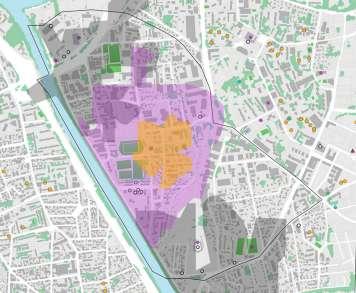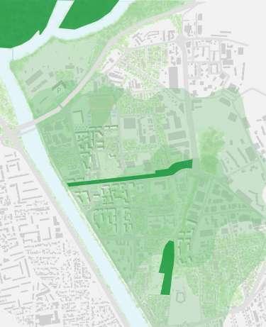Afin de renouveller son patrimoine et ses activités nous avons commencé par prendre sa trame, semblable à des fils entrelacés pour déterminer les différentes couches qui compose la zone : les circulations, les bâtiments à conserver ou non, la trame verte et le bruit. Suite à cela, nous avons déterminé les grandes actions à faire pour lancer le projet.