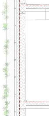 La façade donnant sur le parc est laissé minérale et imposante tandis que les autres sont végétalisés. Cela, ajouté aux larges bacs plantés pour fermer les terrasses donne la sensation que la nature reprend ses droits sur le bâtiments. Ainsi, depuis les jardins partagés, le dessins de l’architecture s’efface au profit du prolongement de la végétation à la vertical. Mais au cas où la végétation ne prenne pas, la façade peut aussi fonctionner avec son calepinage en pierre.