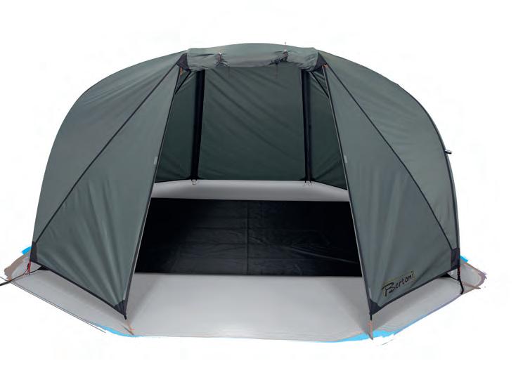 Pavimento: polyetilene P.E. 160 gr/m2, con pavimentazione in tutta la tenda, completamente a catino (TOTAL SYSTEM), corpo unico al sopratetto