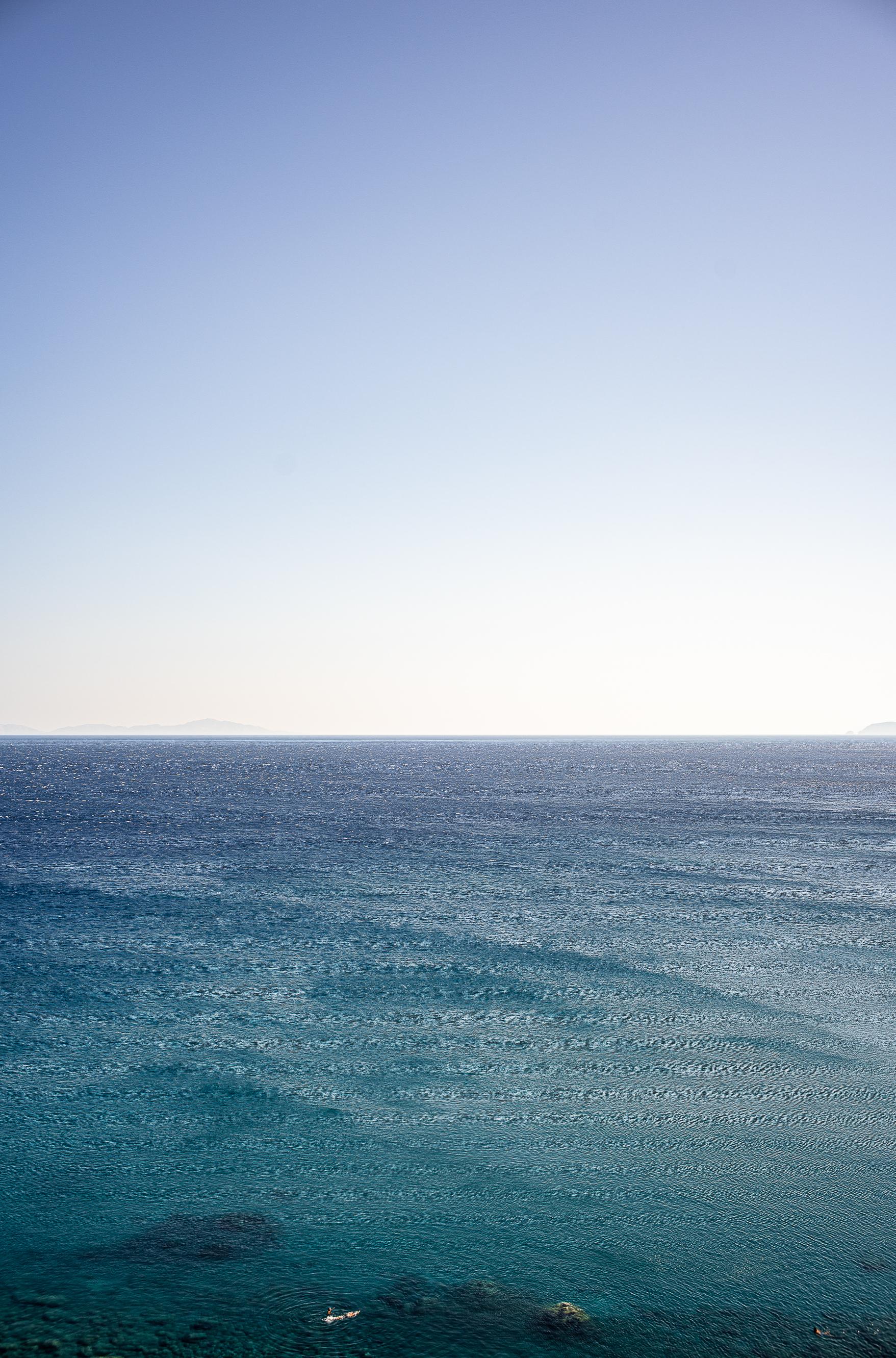 Debout dans le vent léger, sous le soleil qui nous chauffe un seul côté du visage, nous regardons la lumière descendre du ciel, la mer sans une ride, et le sourire de ses dents éclatantes.