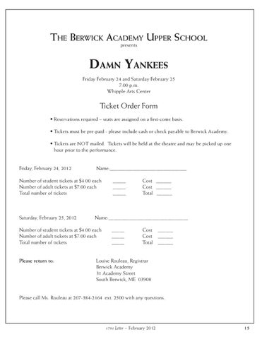• Tickets must be pre-paid - please include cash or check payable to Berwick Academy.