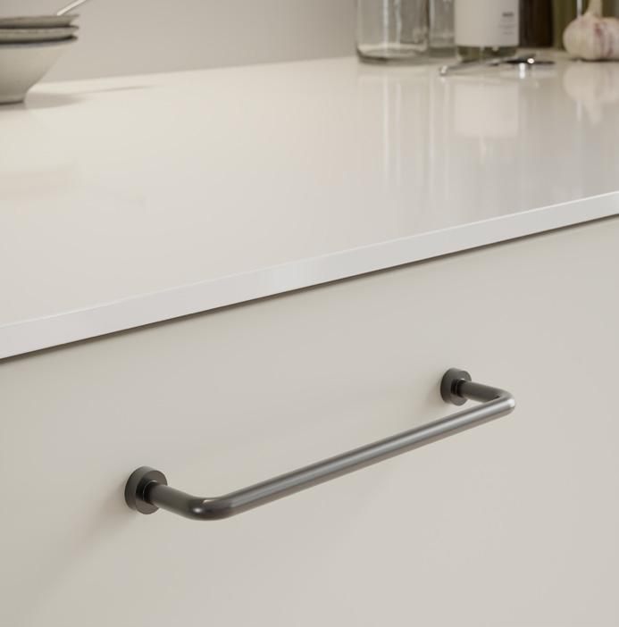 Med inspiration från naturens egen palett har vi tagit fram fyra natursköna färger: grafitgrå, salviagrön, stormblå och kalkgrå. Dessa nyanser är tillgängliga på handtaget Viva och T knoppen Viva, samt på profilhandtaget Side och knoppen Skye. Matcha och mixa efter din egen smak – våra nya färger passar lika bra på köksluckor som på möbler och garderobsdörrar. Skapa enkelt en sammanhängande och stilren inredning.
