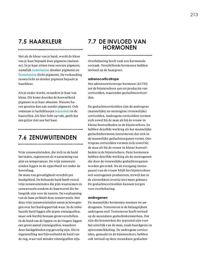 • Vrouwelijk beharingspatroon: Donshaar in het gezicht, geen borsthaar en minder beharing op armen en benen.