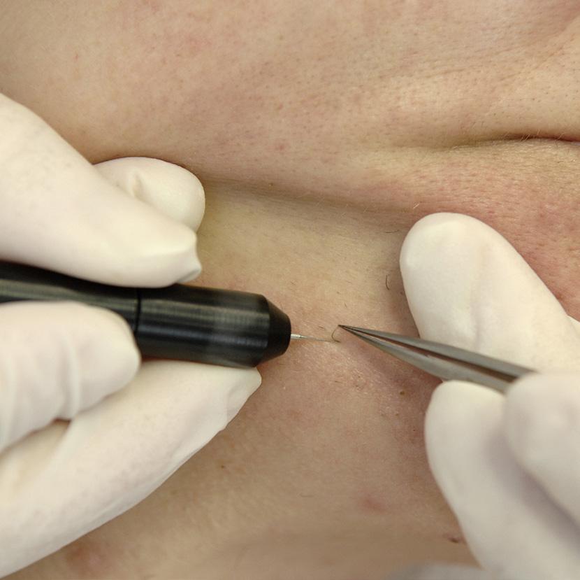 Om de juiste naald te kunnen kiezen onderzoek je eerst het te ontharen gebied. Je kijkt naar: