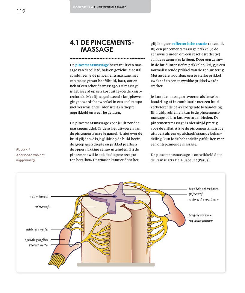 Foto 6.58b en 6.58c moeten worden omgewisseld. Belangrijk is dat bij het masseren van de oren alle vingers achter de oren staan wanneer met de duimmuizen een strekkende beweging naar boven wordt gemaakt.