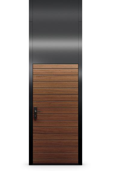 This is a unique door. A combination of aluminium and heartwarming wood. It looks spectacular and makes a great impression against the backdrop of the facade.
