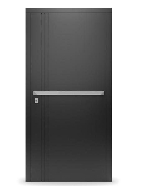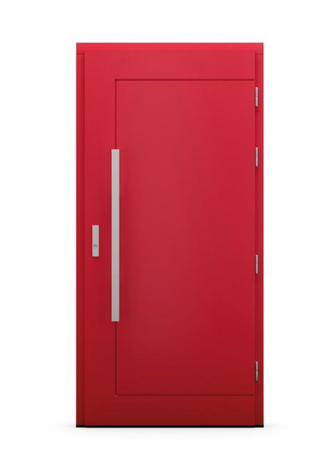 Doors with concealed hinges and flushed on both sides with the door frame or the glazing unit. Ud < 0.81 W/m2K, leaf thickness: 90mm.