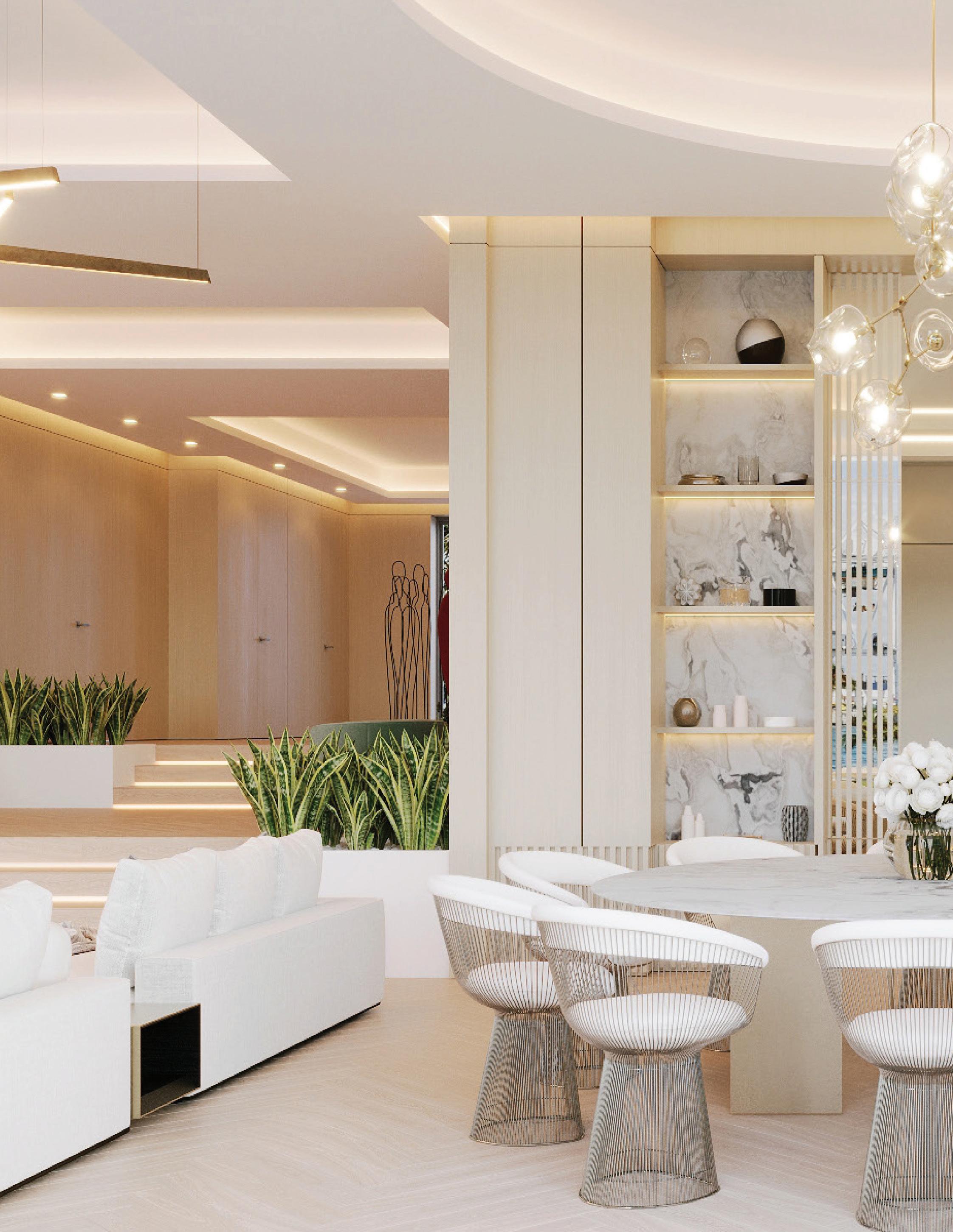 A seamless fusion of contemporary aesthetics and sophisticated craftsmanship defines Villa 6. This residence exemplifies indoor/outdoor living with floorto-ceiling, impact-resistant insulated window systems, custom millwork throughout, and an open, airy design.