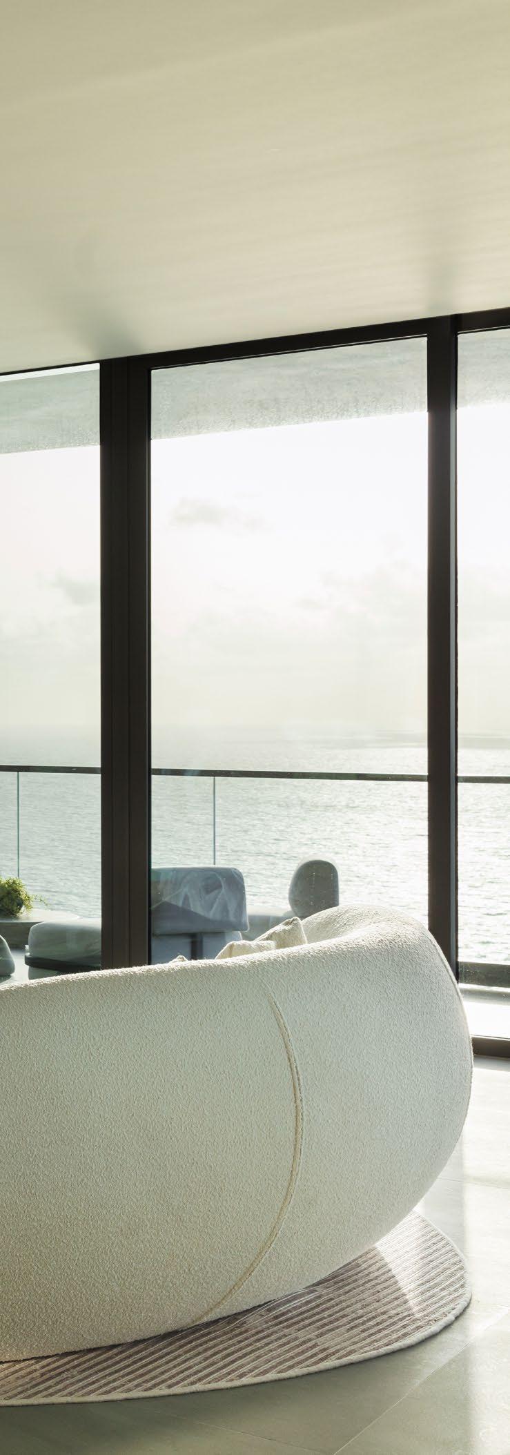 On a pristine stretch of white sand dunes and sea grapes, just north of South Florida’s Golden Beach, this contemporary, 38-story glass tower showcases panoramic views of the Atlantic Ocean, Intracoastal