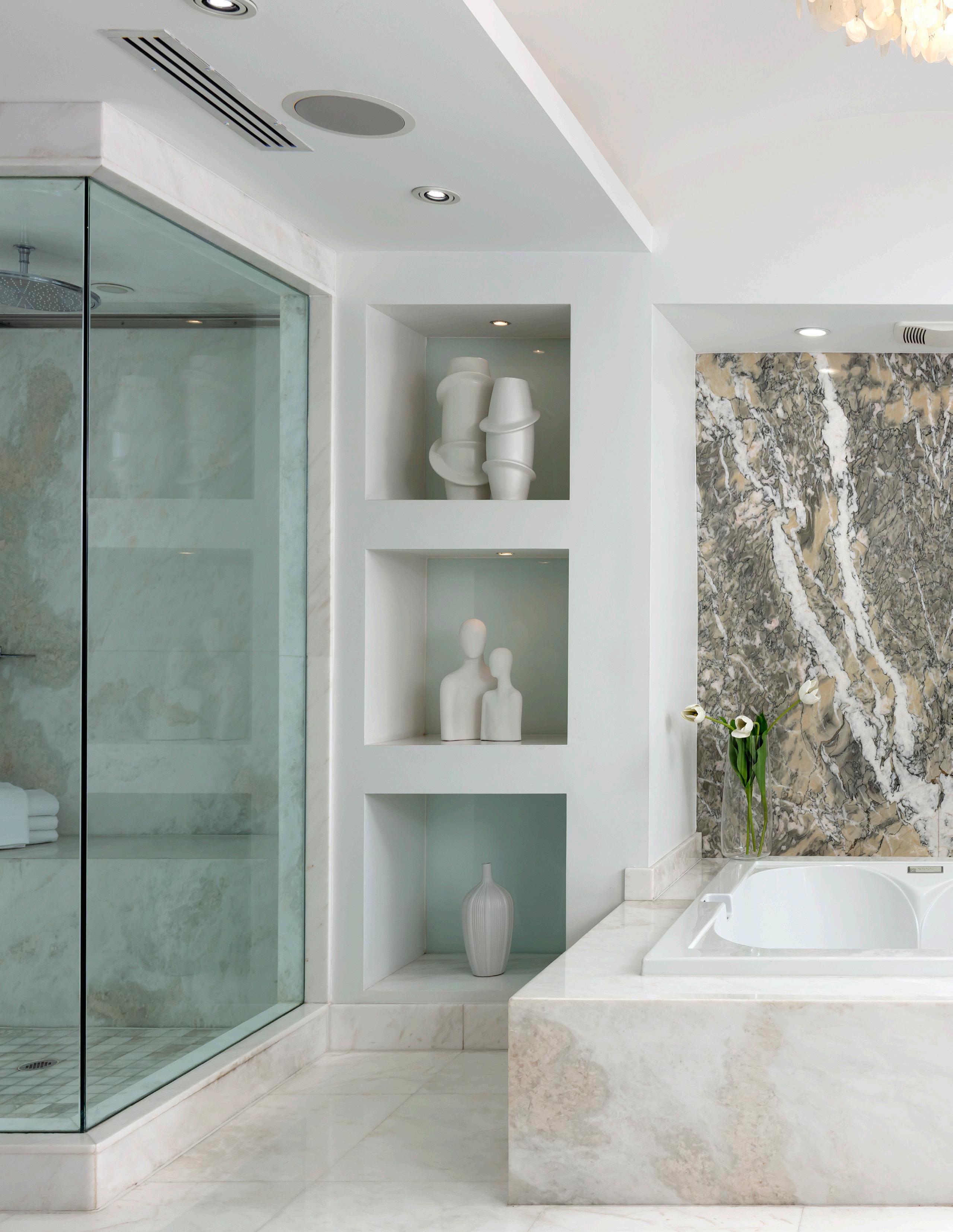Formal living and dining rooms are complemented by an expansive family room with an entertainment bar, billiards room, a state-ofthe-art home theater, and a sunlit conservatory—each offering endless bay views.
