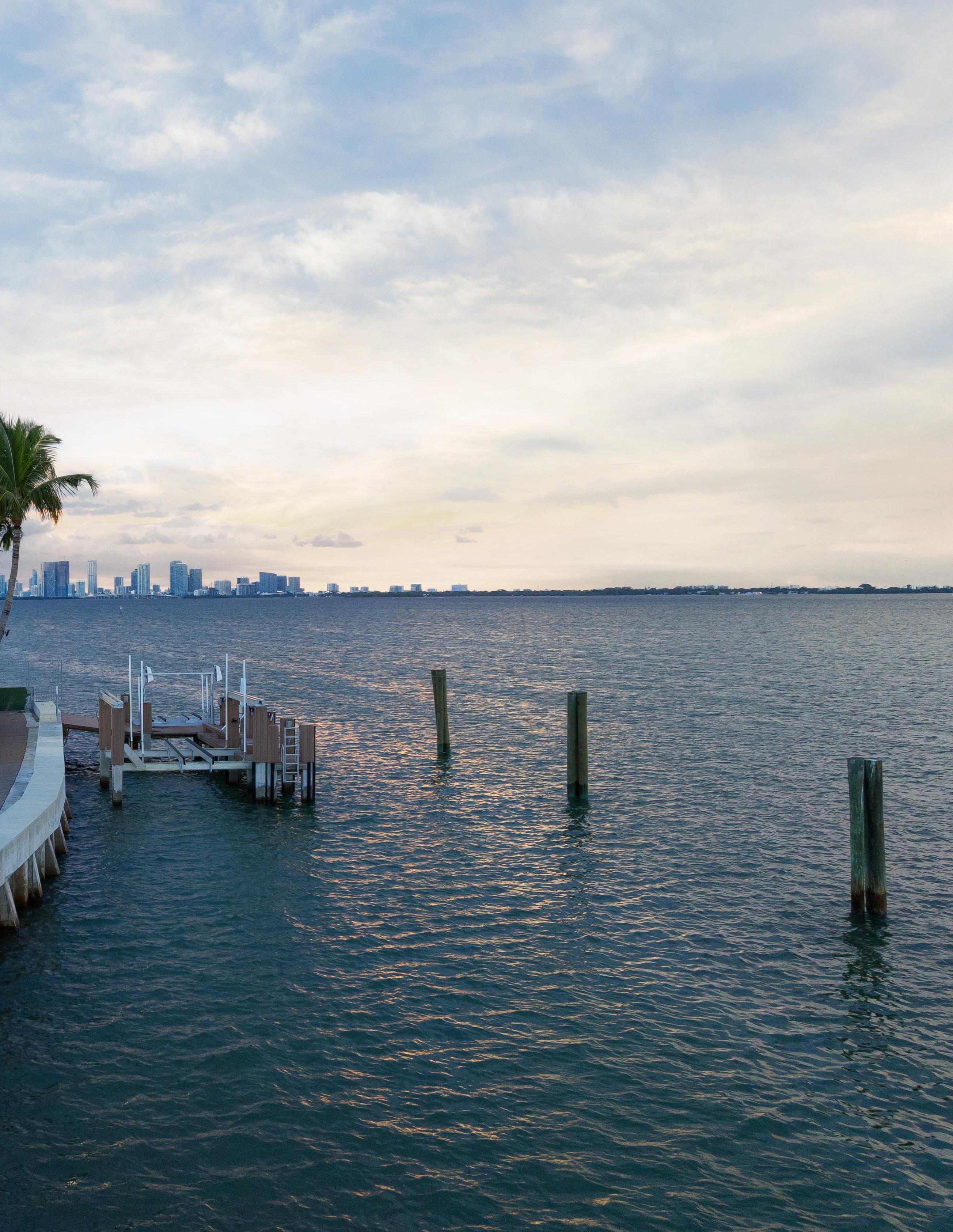 With 290’ of bulkheaded water frontage+/- and sweeping skyline views, the estate’s private dock with boat lift provides seamless access to the navigable waters of Biscayne Bay, offering an unmatched yachting lifestyle with direct routes to Fisher Island, Key Biscayne, and the Atlantic Ocean.