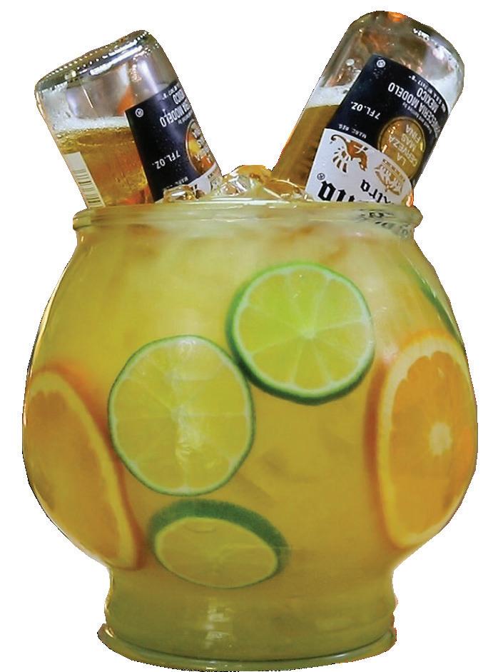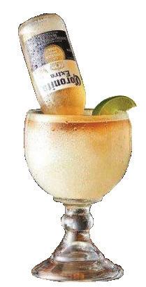 2 Cervezas Corona y margarita preparada con tequila, jugo de limón, margarita mix y jugo de naranja.