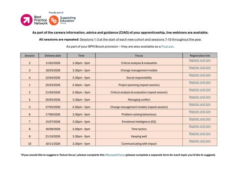 As part of the careers information, advice and guidance (CIAG) of your apprenticeship, live webinars are available.