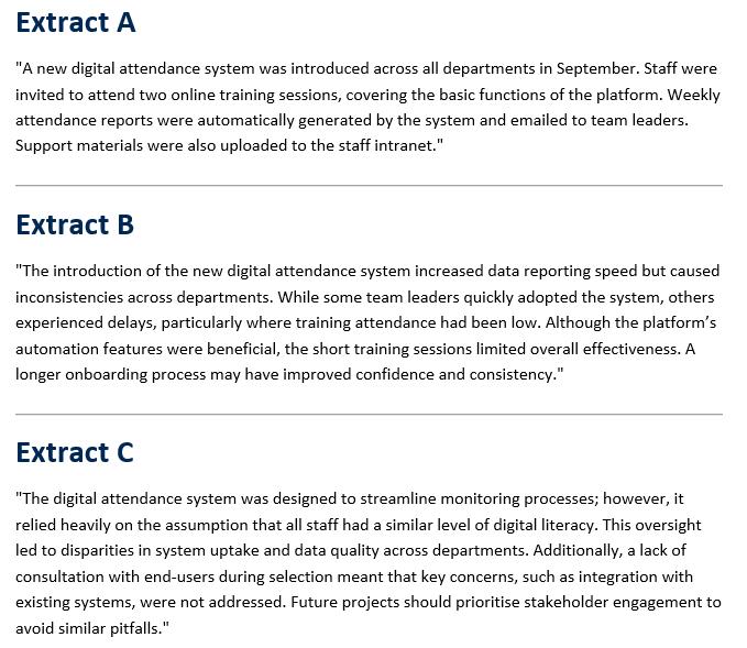 • Consider each of the three, short writing extracts