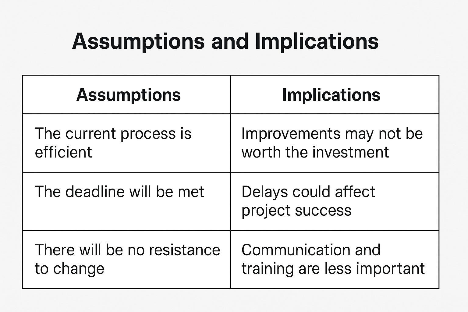 An assumptions & implications analysis supports evaluative and critical writing by exploring hidden risks and encouraging you to question what is taken for granted. It helps identify weaknesses and reflect on consequences, promoting forward-thinking and deeper insight in your writing.