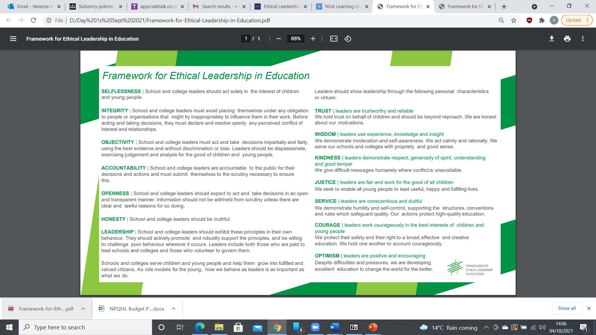 10.3. School leaders are accountable for their decisions and actions and must submit themselves to the scrutiny necessary to ensure this.