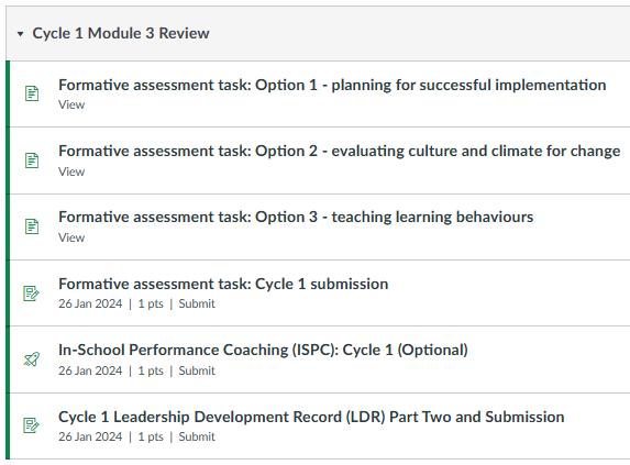 • To identify learning pathway for remainder of Cycle One to address areas for development