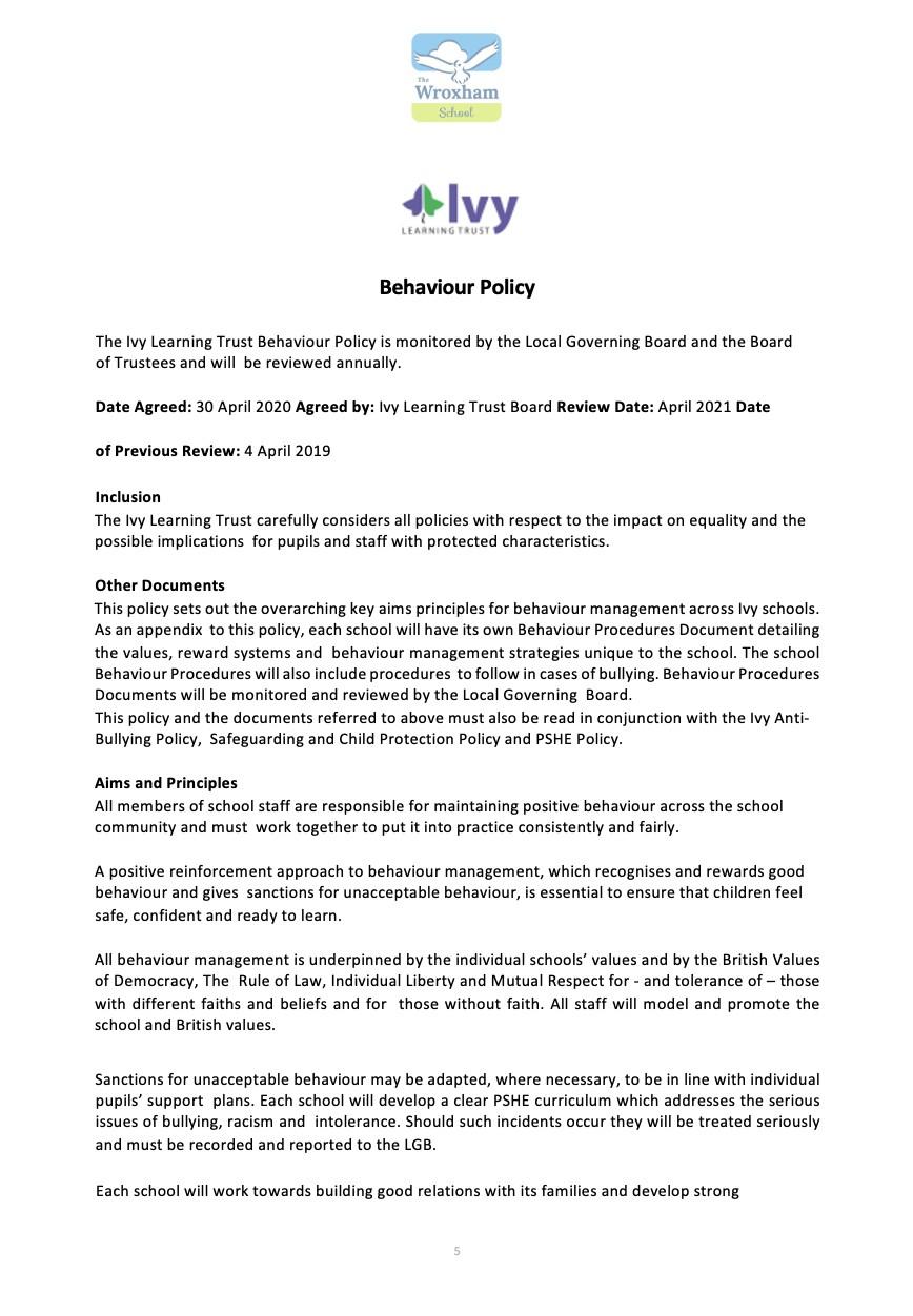 3. Bring your own school’s Behaviour and Culture Policy (title and approach will vary at each school/MAT) or similar documentation.