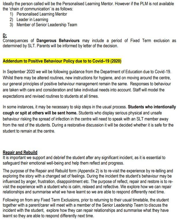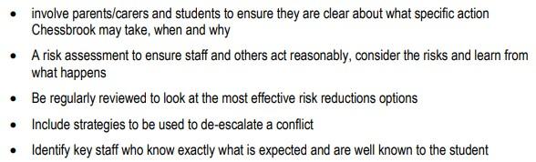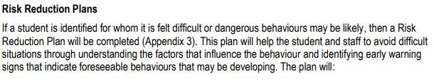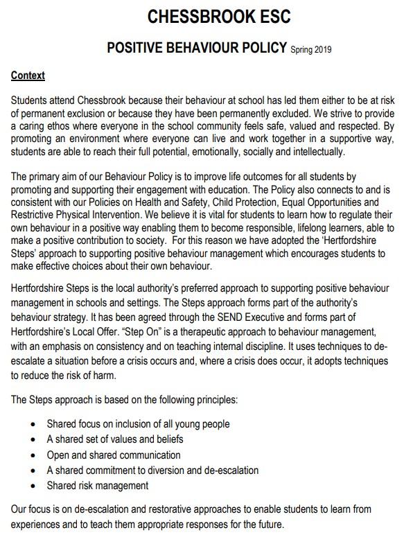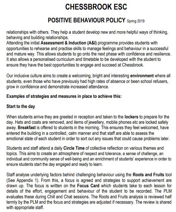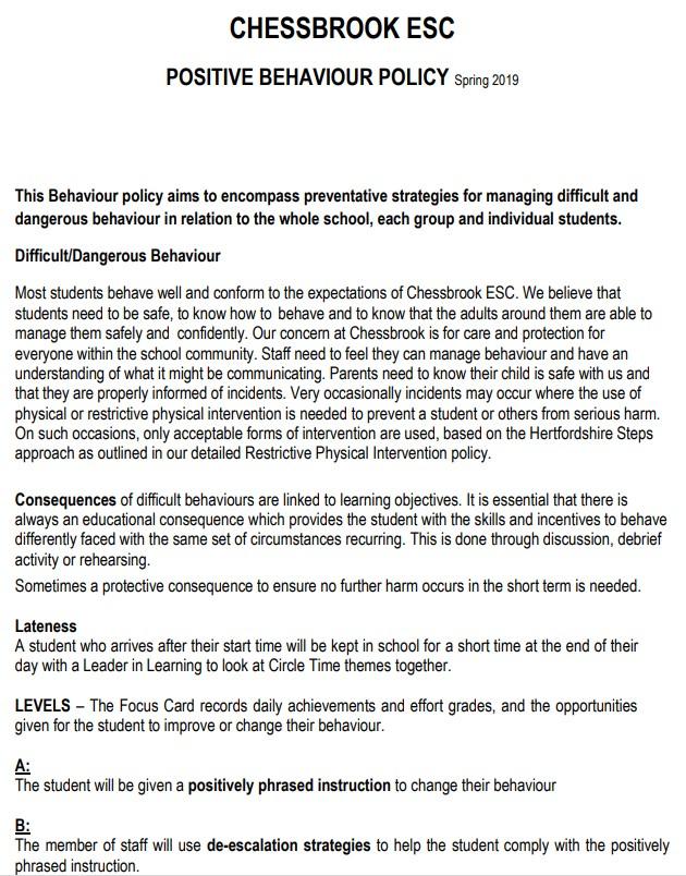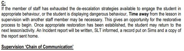 § Does the policy clearly outline the process for escalating behaviour incidents? Identify an example of how this process has worked effectively.