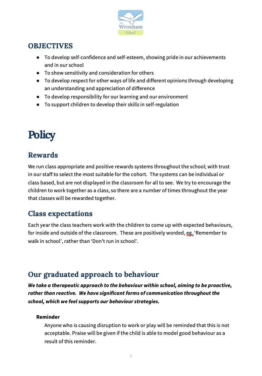 § Does the policy clearly outline the school’s range of rewards and sanctions, highlighting the need for these to be proportionate and fair according to the age and circumstances of the pupil?