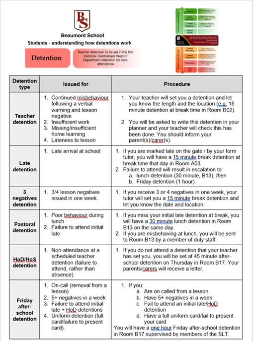 3a. Contributing to the creation of a whole school approach to recognition, rules and sanctions that is built on strong relationships between pupils and staff, complements the intended school culture and includes a clear approach to escalation of behaviour incidents.