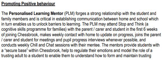 Effective leaders of behaviour and culture actively seek and apply knowledge of policies and regulations relating to SEND (including reasonable adjustments), looked after children, children who have a social worker, safeguarding and exclusions.
