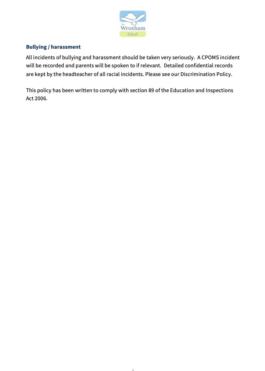4.e. Contributing to the creation and implementation of a whole school anti-bullying approach including prevention work that encourages pupils to empathise with others, understand the harm caused by bullying and play an active role in supporting all of their peers.