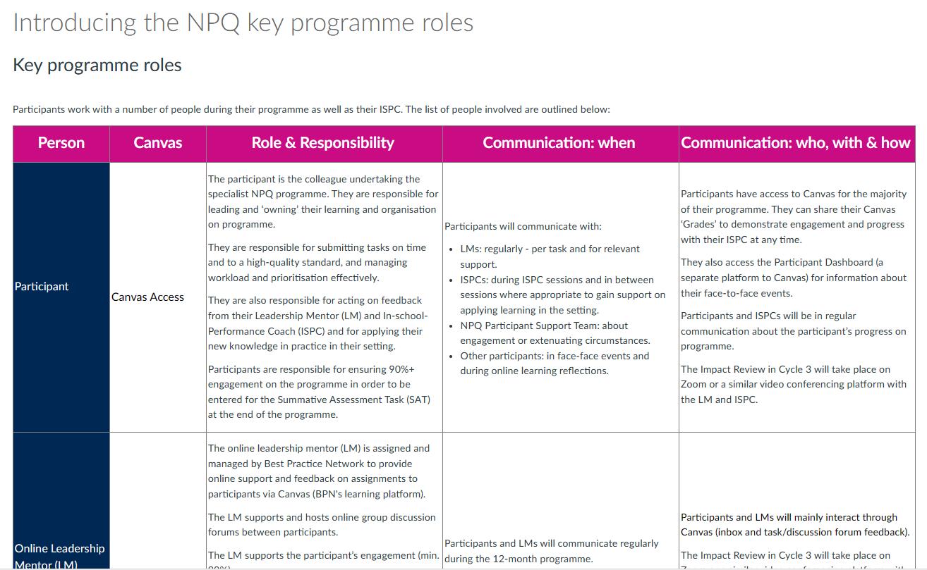 5. There will be an online leadership mentor assigned to all participants engaging in a specialist NPQ programme to support with all online aspects – they will be the main point of contact