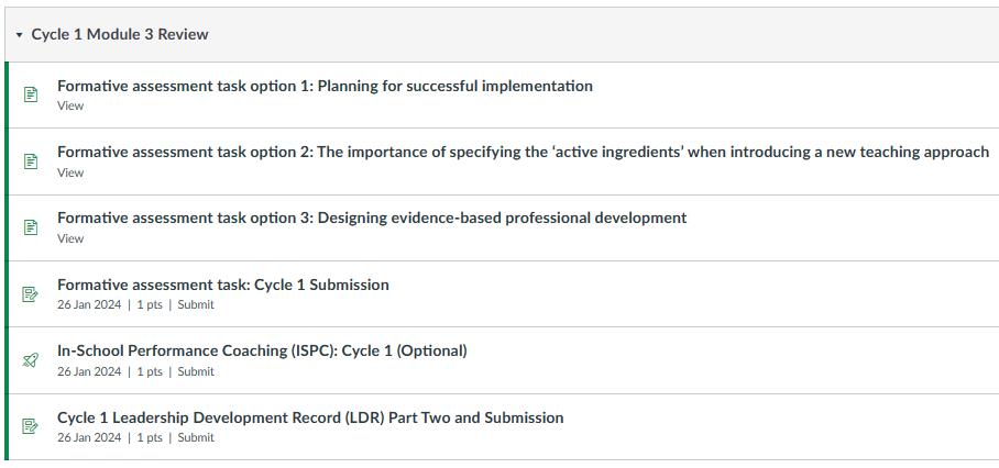 • To identify learning pathway for remainder of Cycle One to address areas for development