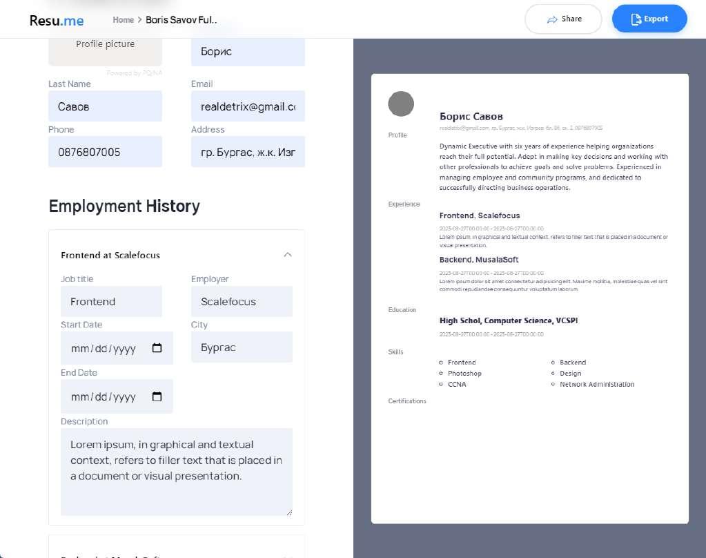 Design and Implementation of an interactive online platform for creation of dynamic and stylish CVs.