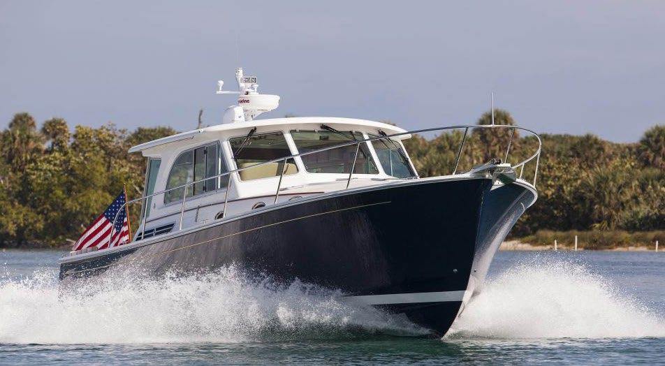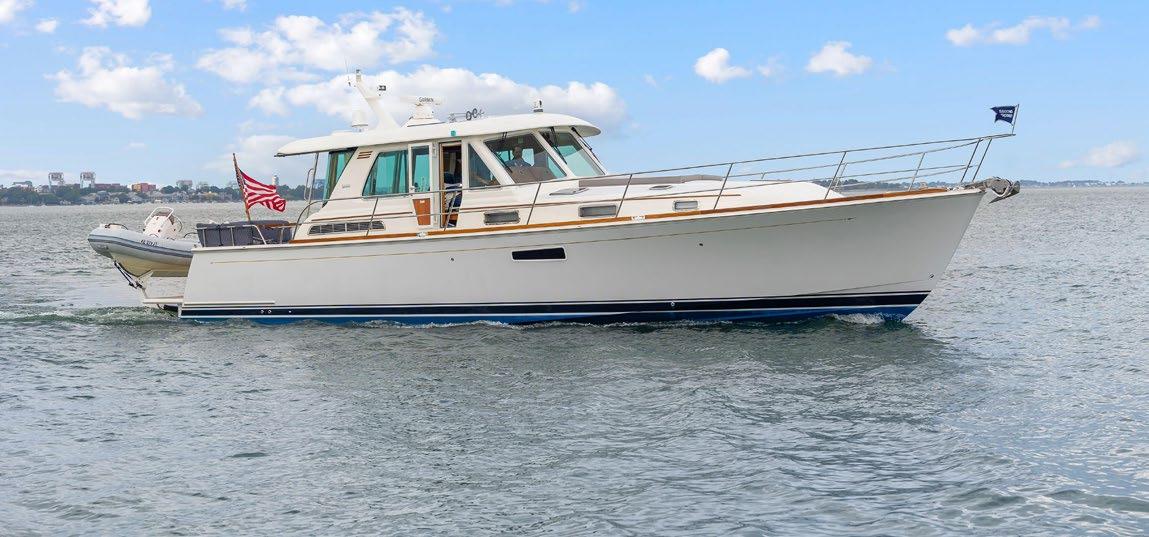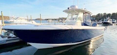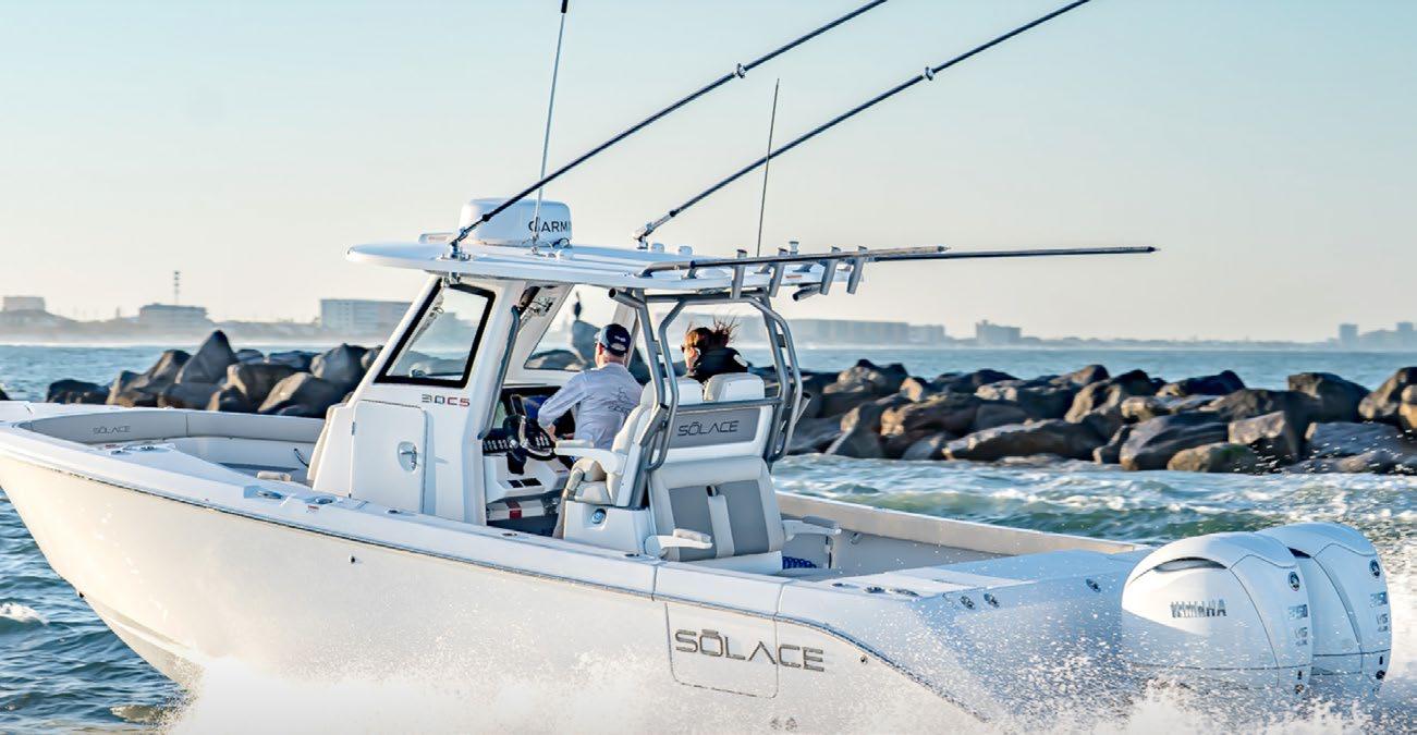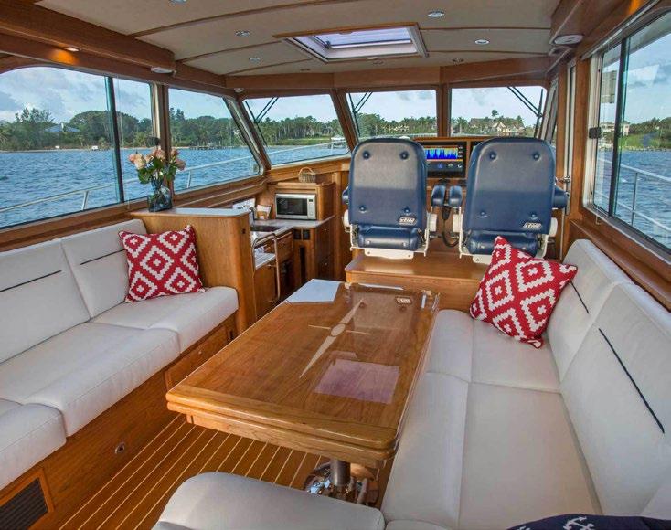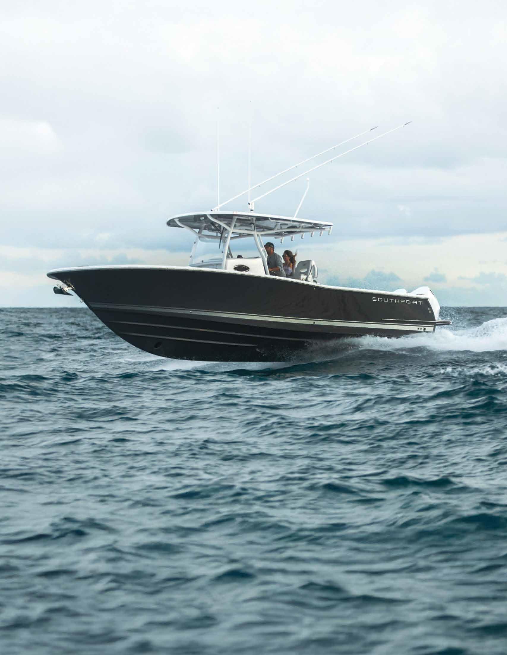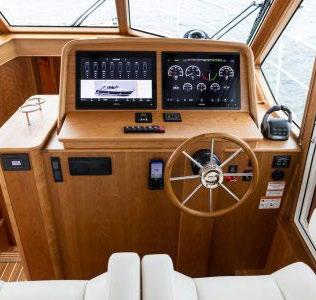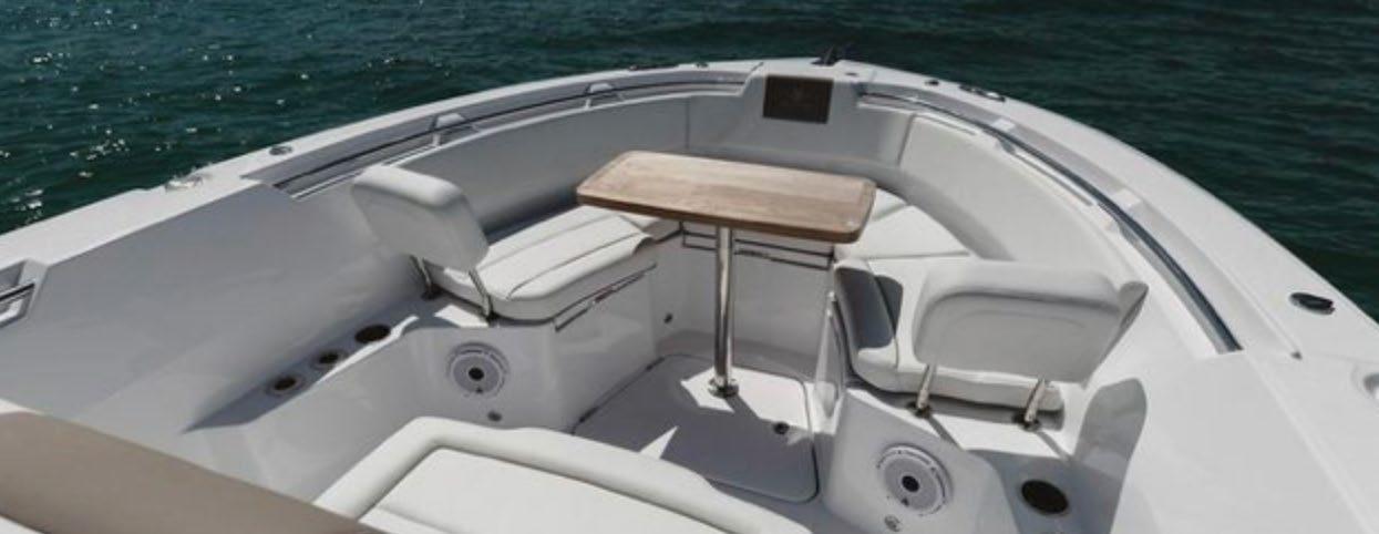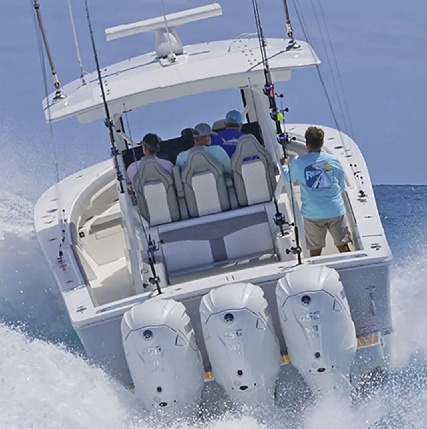 The 45 Carolinian hull has the look worthy of her name with Carolina flare, tumblehome, and a soft broken sheer. Triple 600 HP Mercury power will provide fast cruising speeds, maneuverability, and shallow draft, while freeing up space in the hull to accommodate mechanical equipment and a truly livable