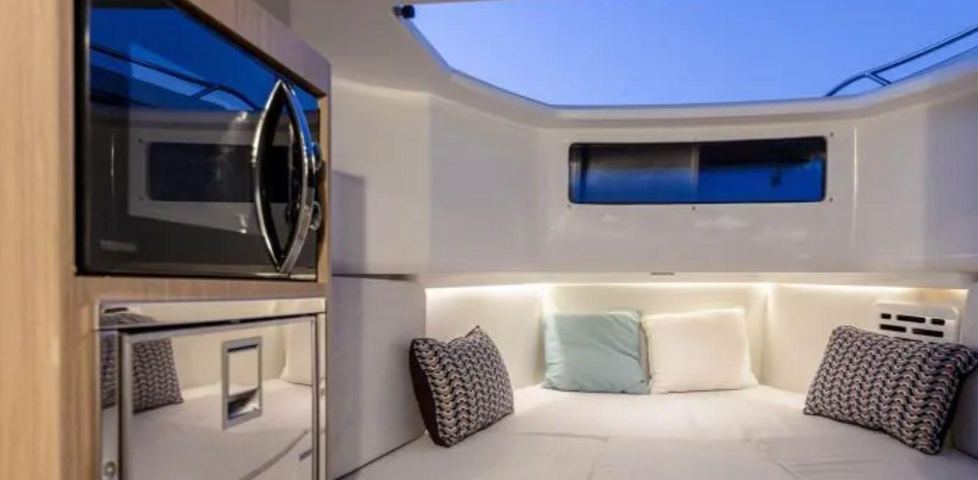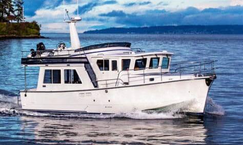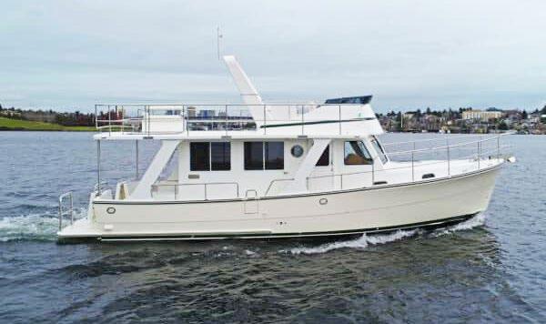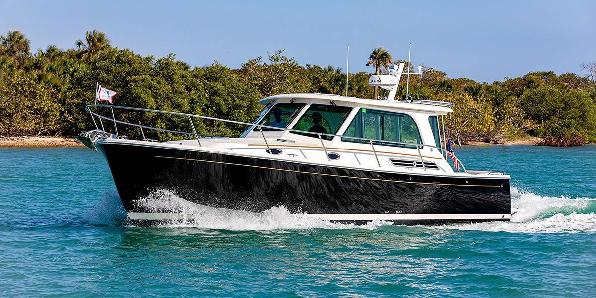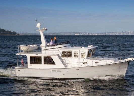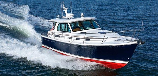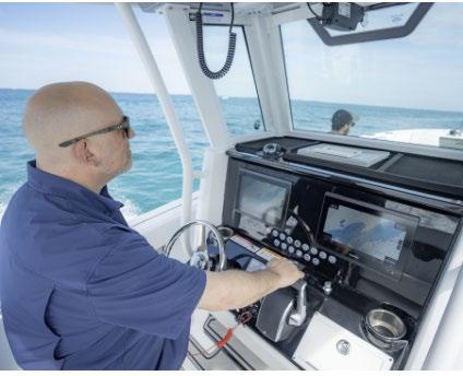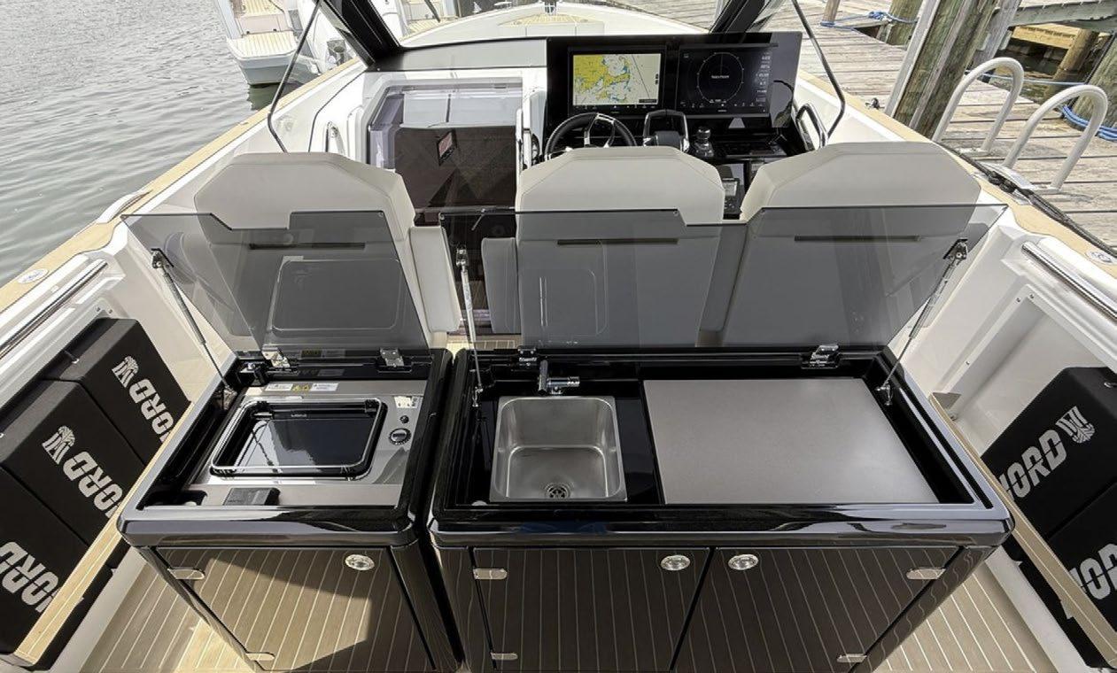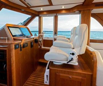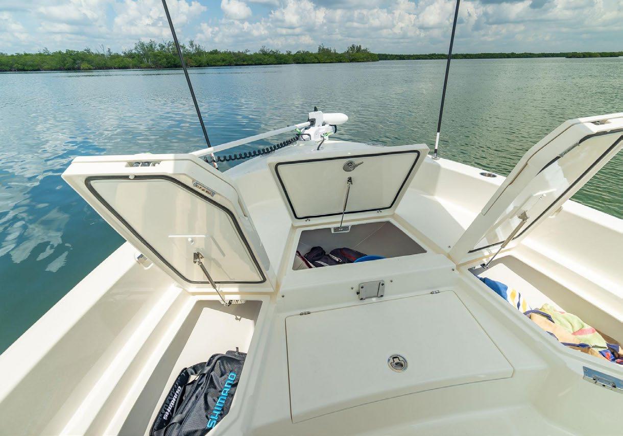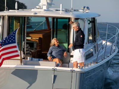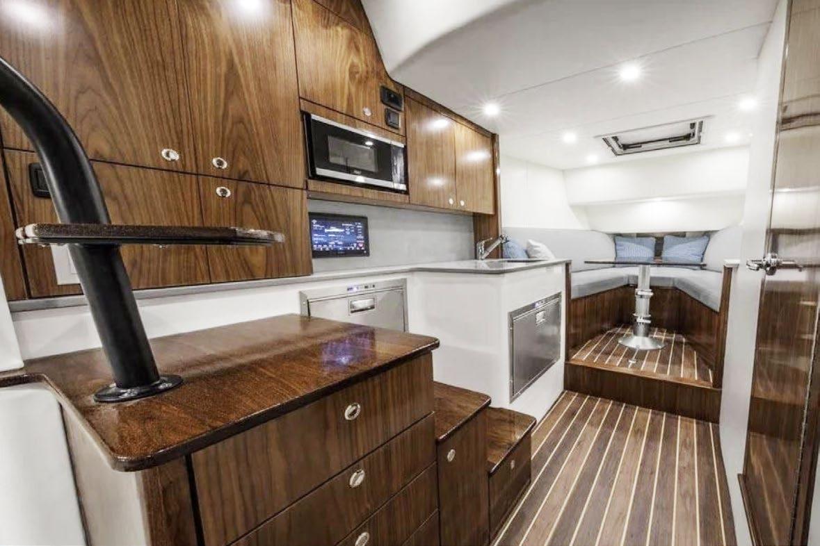 The 45 Carolinian hull has the look worthy of her name with Carolina flare, tumblehome, and a soft broken sheer. Triple 600 HP Mercury power will provide fast cruising speeds, maneuverability, and shallow draft, while freeing up space in the hull to accommodate mechanical equipment and a truly livable