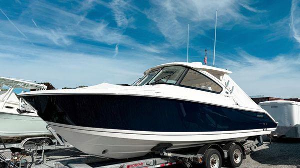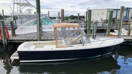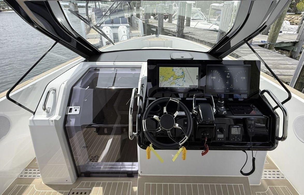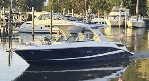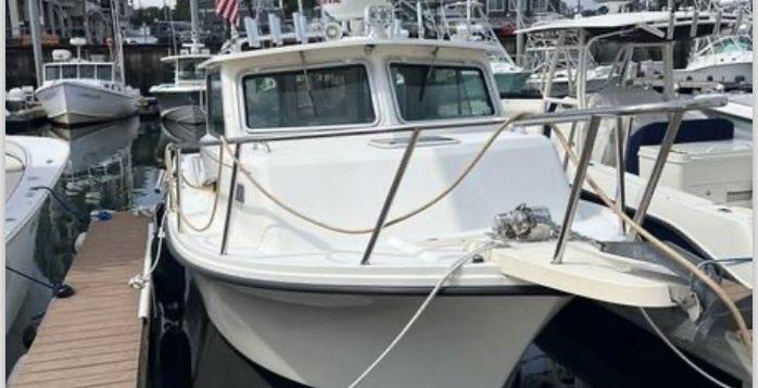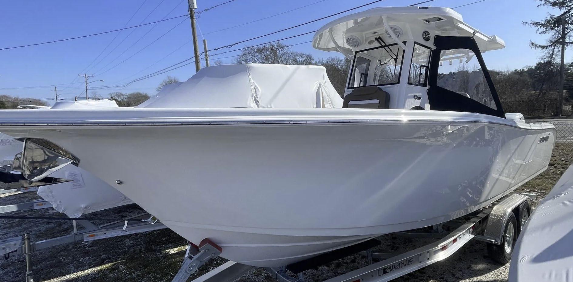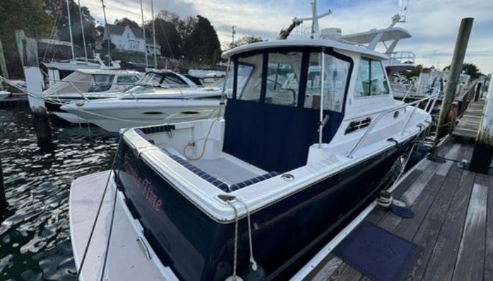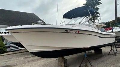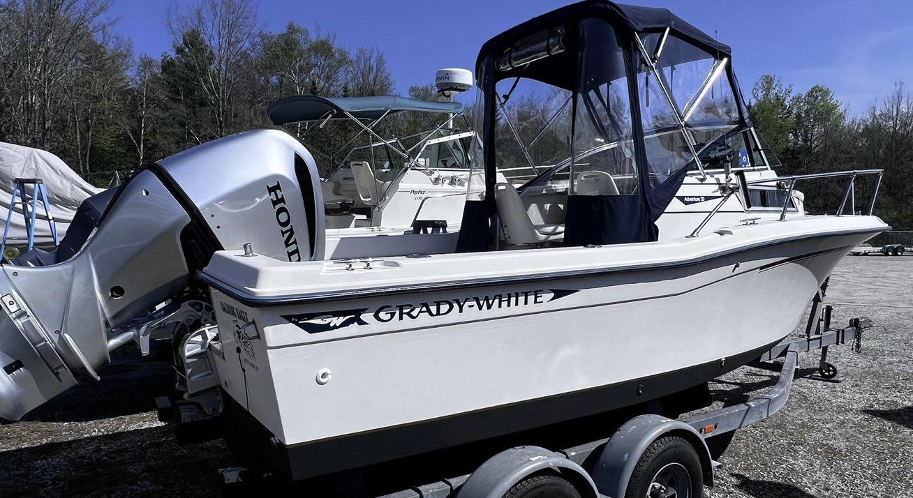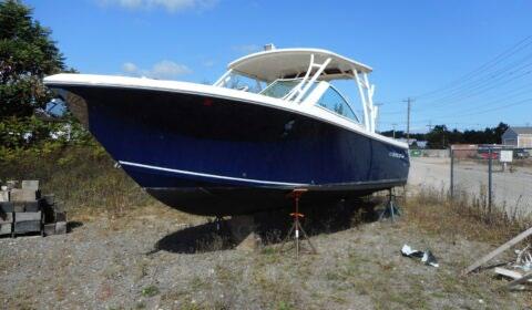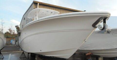 hardtop, frame powder coated, full windshield, elec head w/holding tank bow seating pkg, Scarab offshore pkg rocket launchers, gray stripe, S/S prop, lots of standard features. Includes freight & prep.