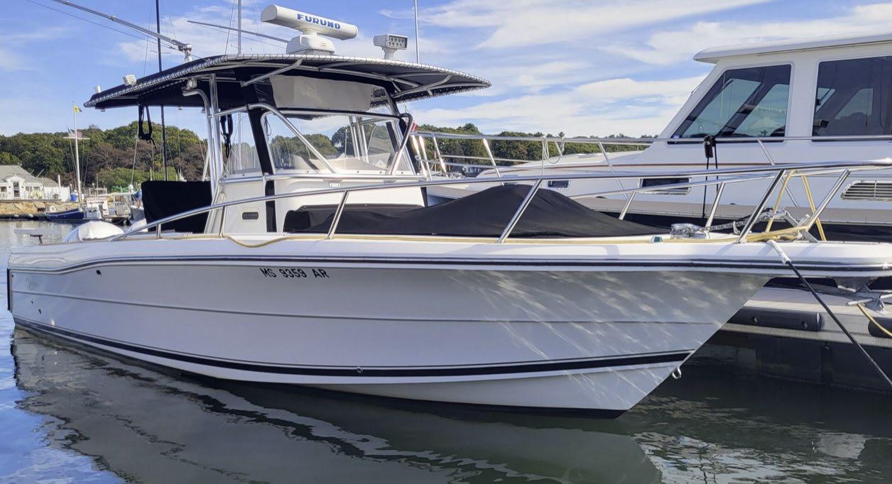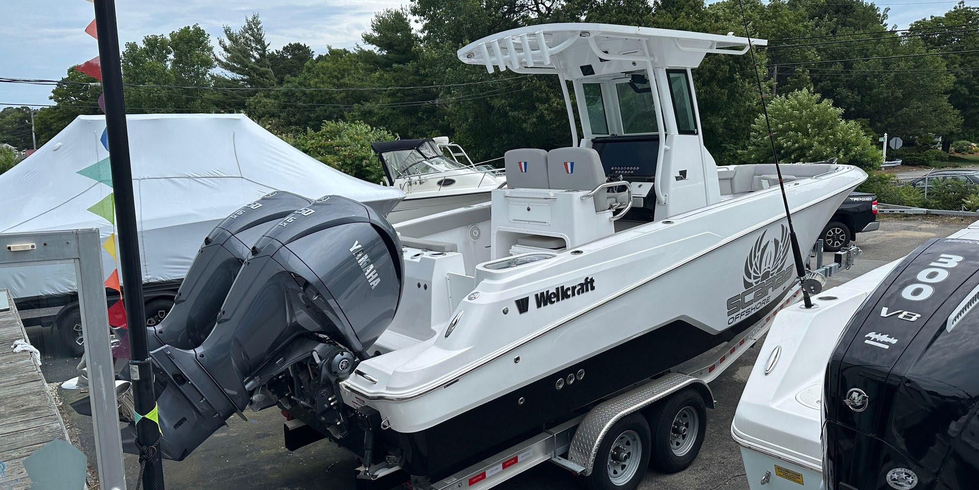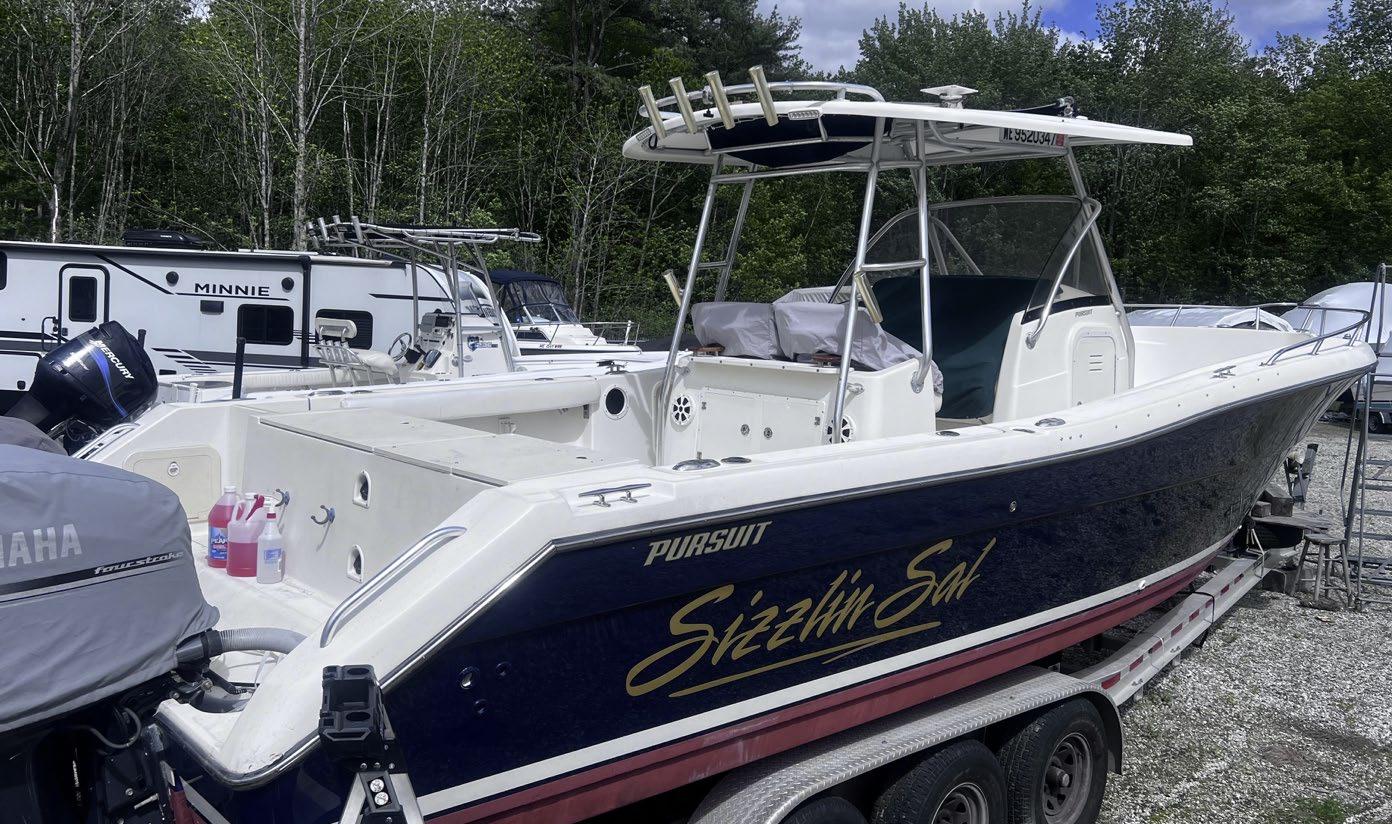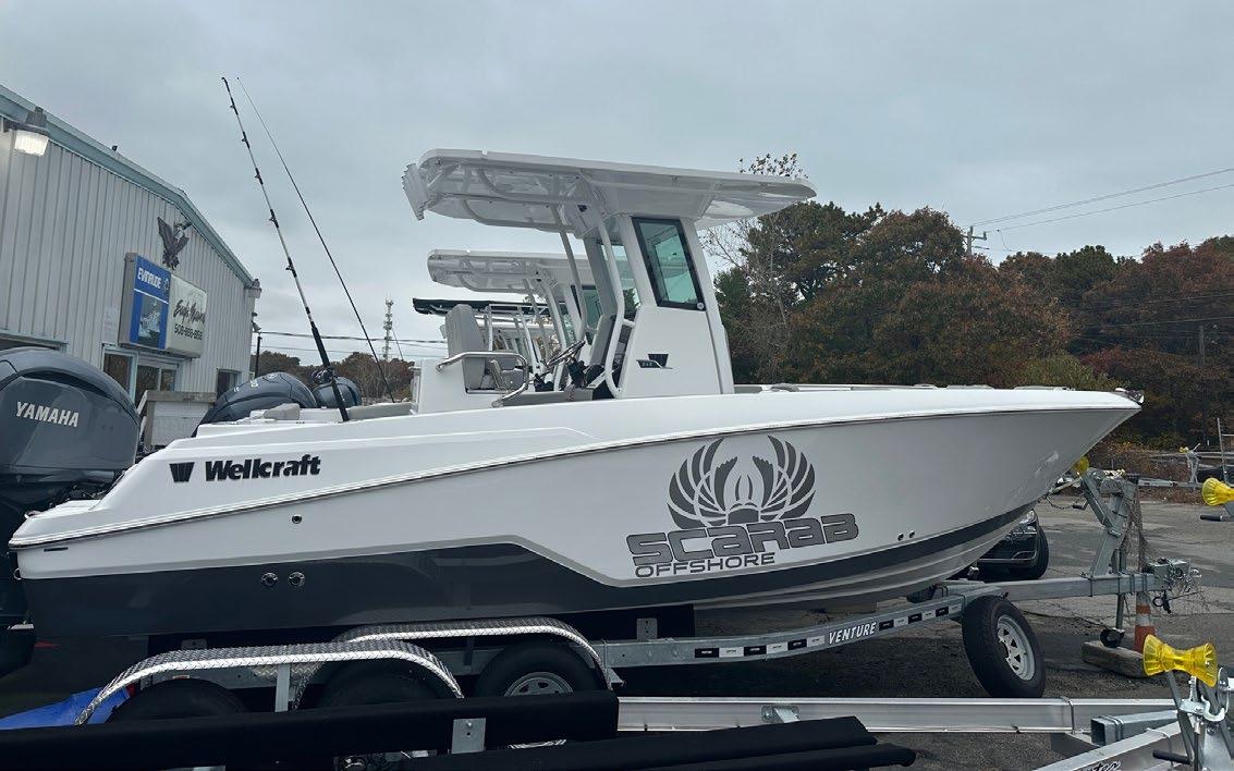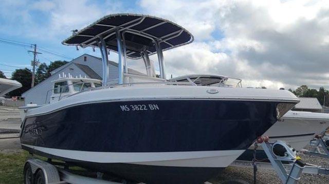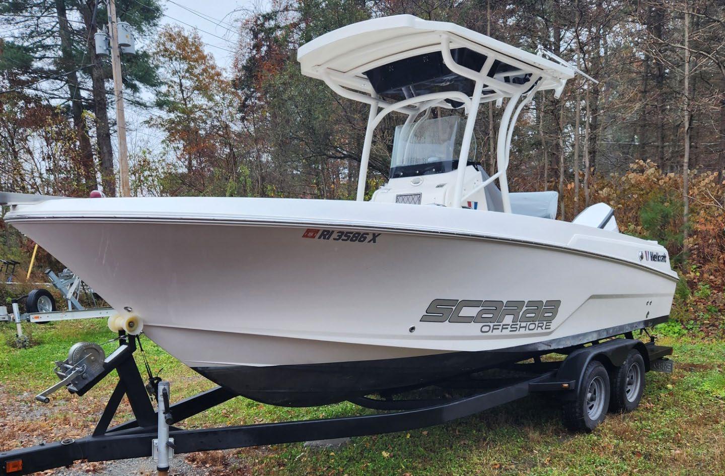 Scarab package, T/top, black accent compass, porta potti, bow package trim tabs, S/S prop, on custom trlr. Includes freight and prep.