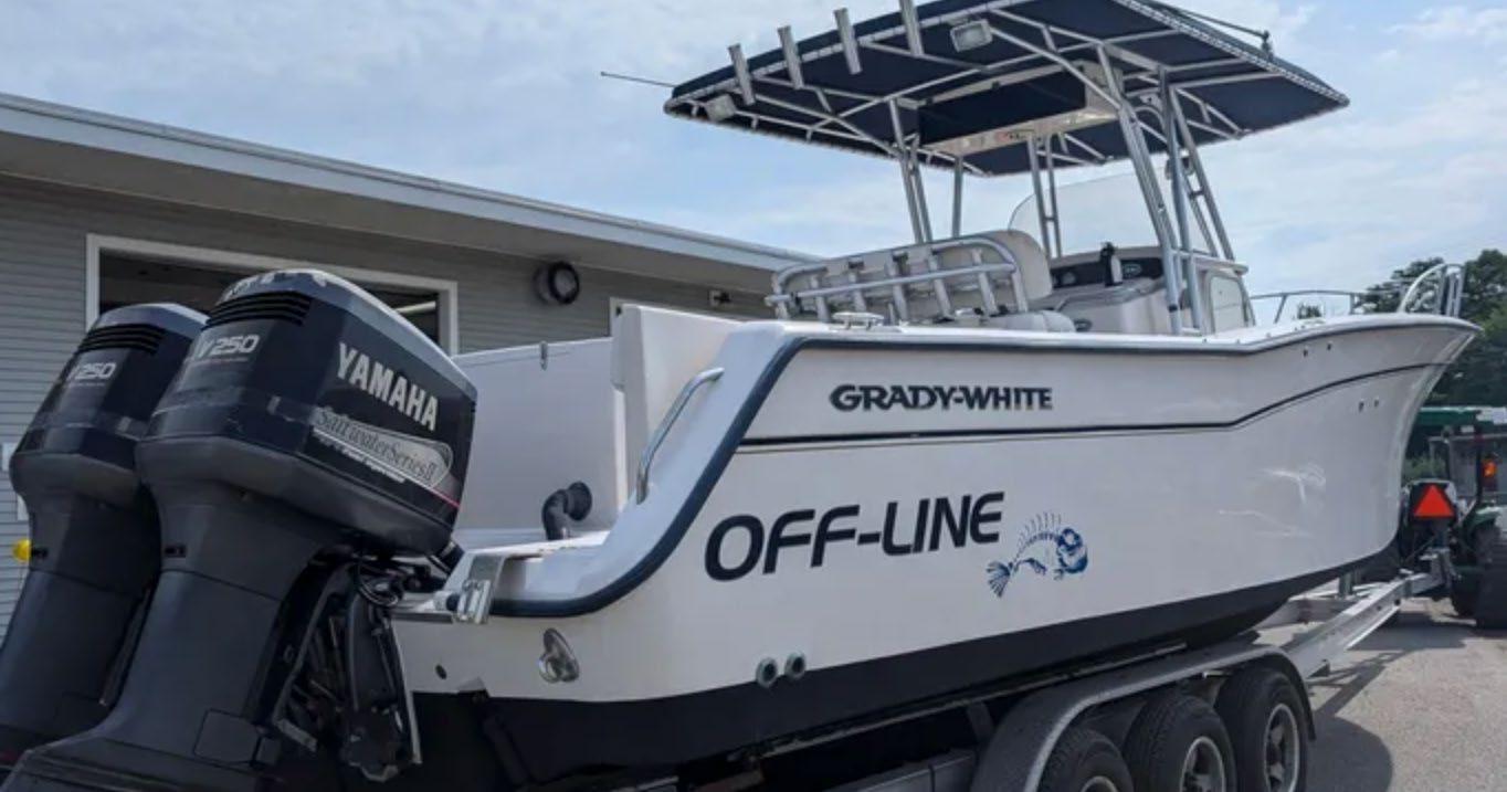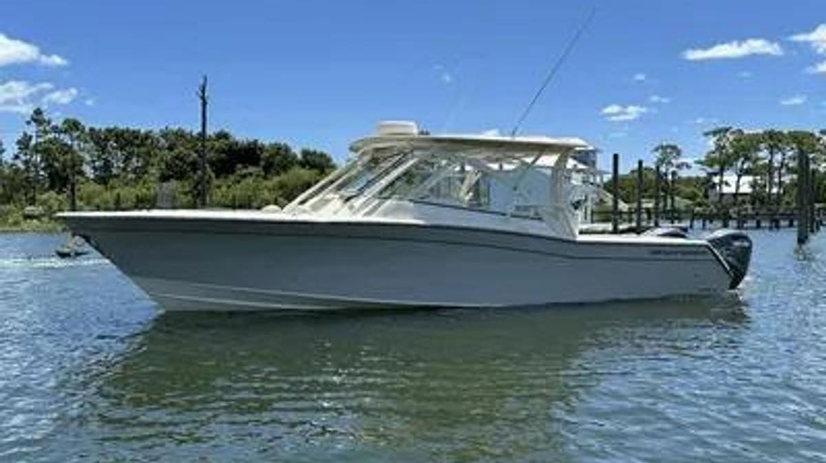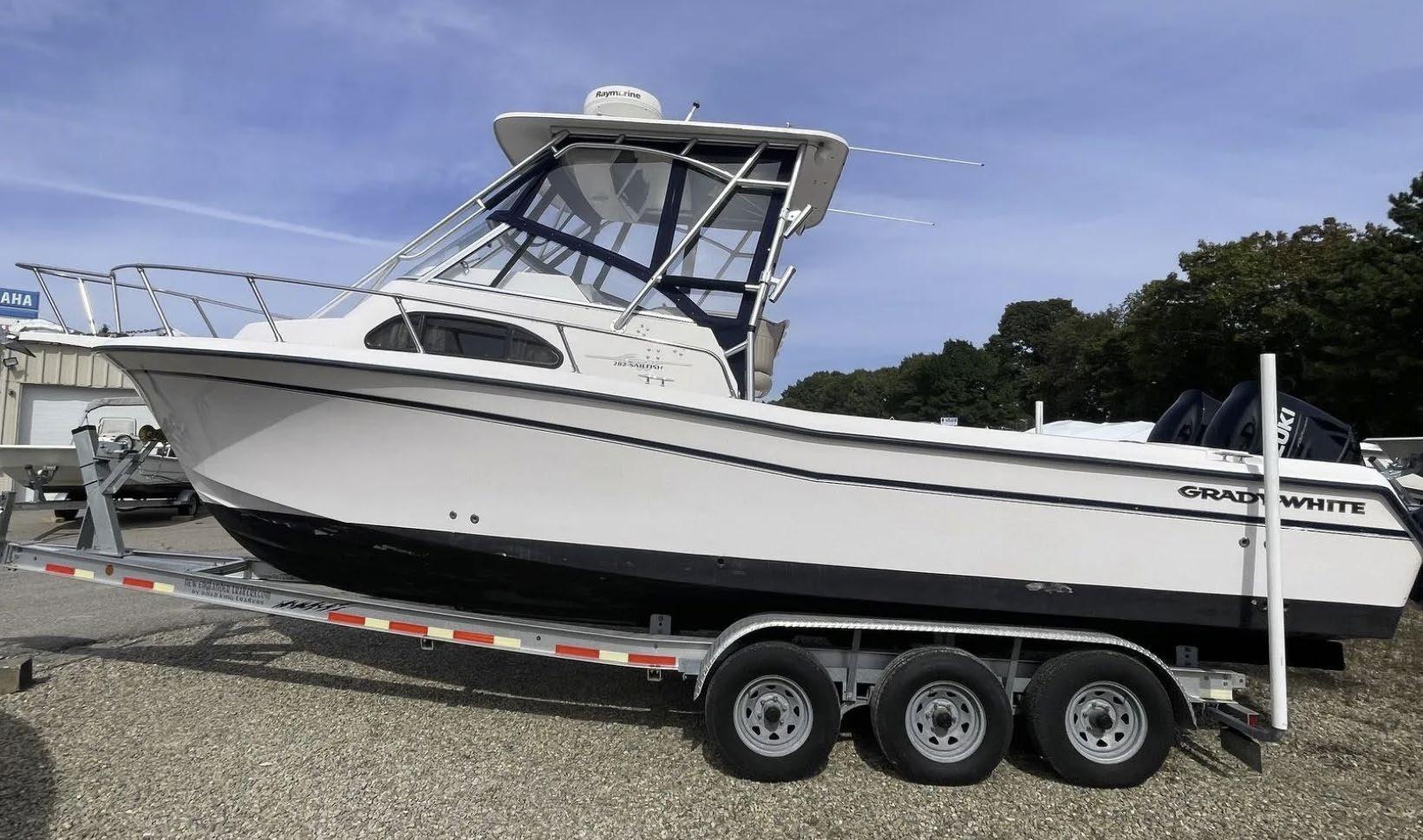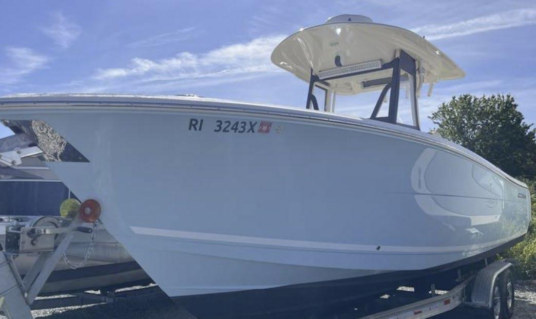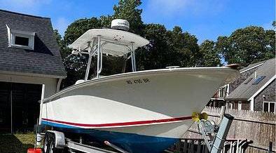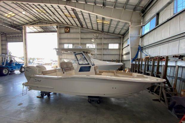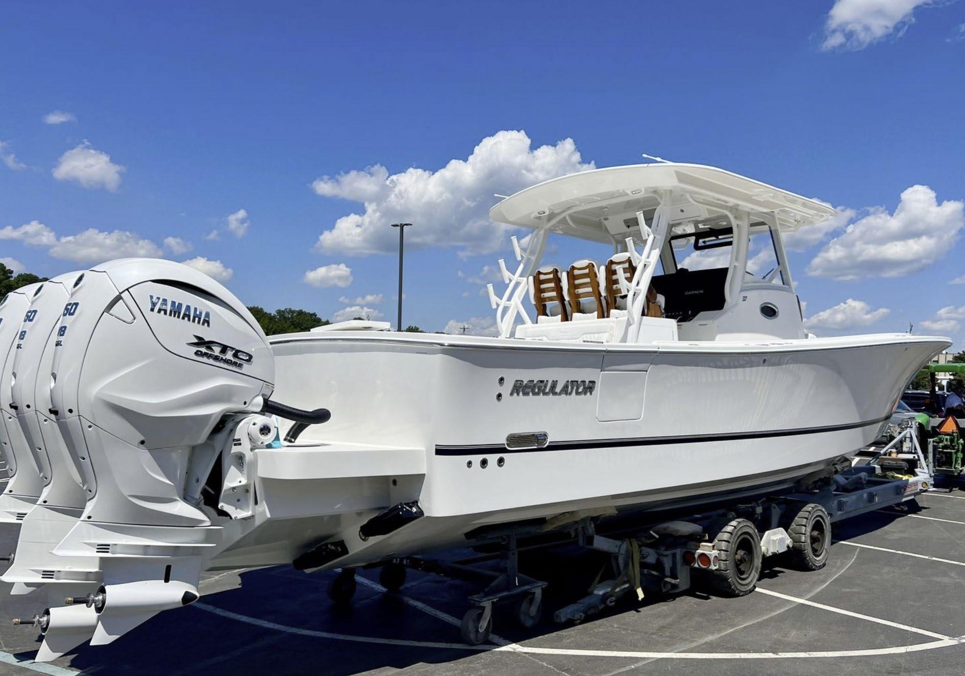 Scarab package, T/top, black accent compass, porta potti, bow package trim tabs, S/S prop, on custom trlr. Includes freight and prep.