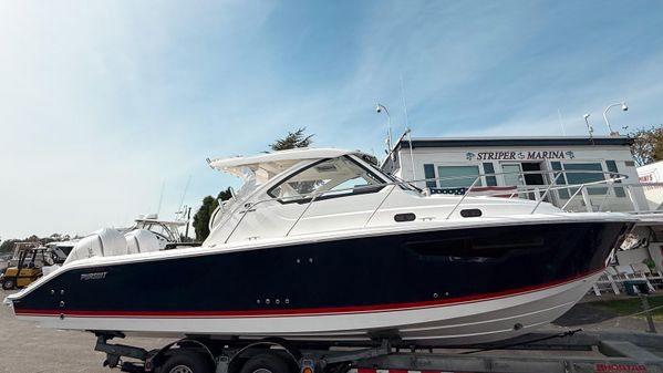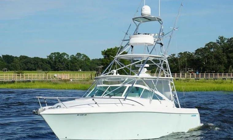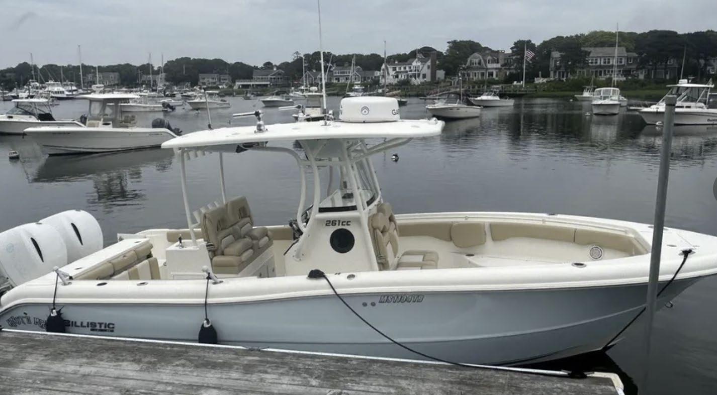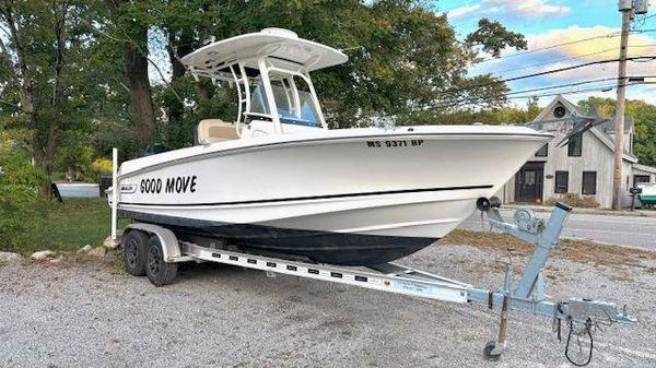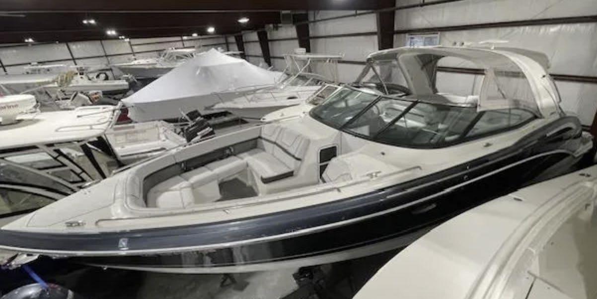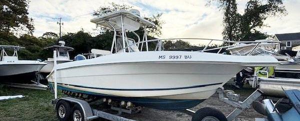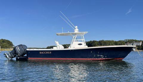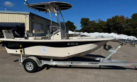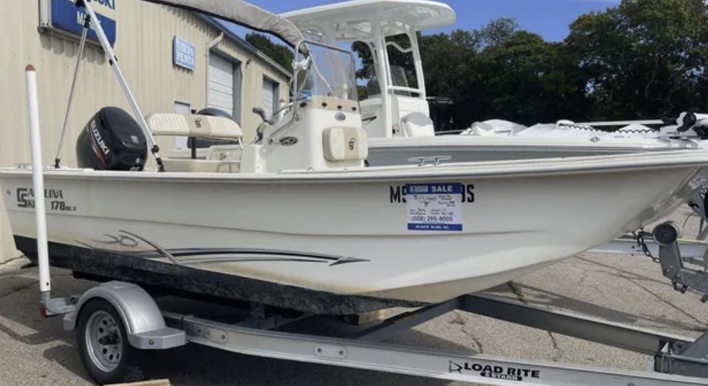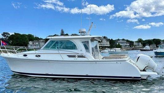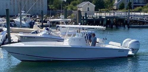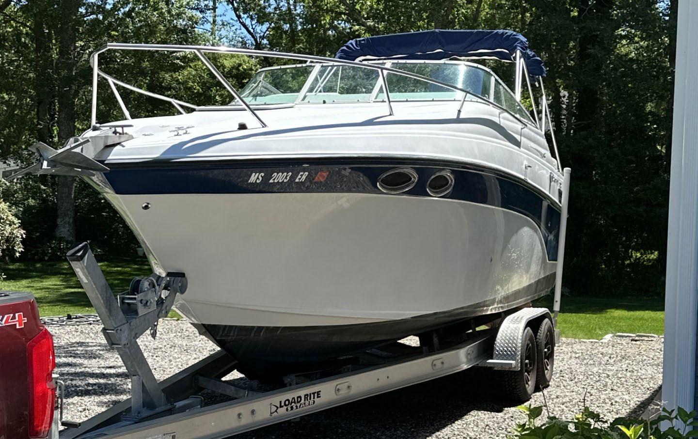 Scarab package, T/top, black accent compass, porta potti, bow package trim tabs, S/S prop, on custom trlr. Includes freight and prep.