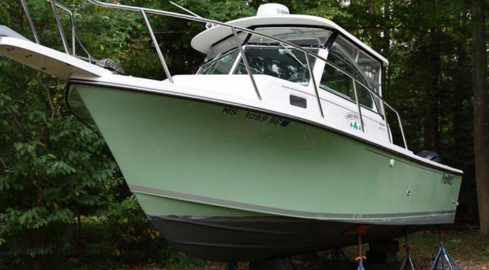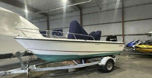 Sea Foam green stripe, white hardtop, powder coated, complete closed windshield, S/S prop. Includes freight & prep.