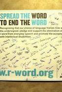 (STW ETW) is an ongoing movement to end the hurtful and demeaning use of the word “retard(ed).” Chapters all throughout <State/Country> held a STW ETW awareness event at their respective schools. Our Best Buddies participants raised the consciousness of their classmates about the dehumanizing effects of using the R-Word and encouraged people to stop using the word.