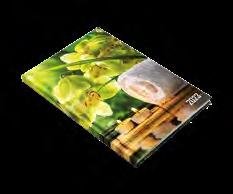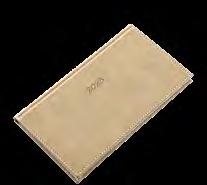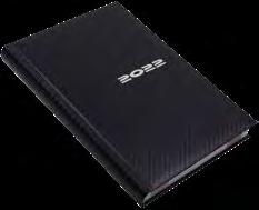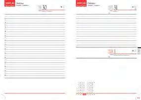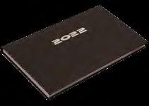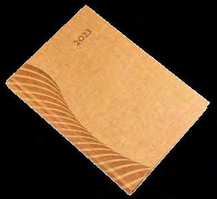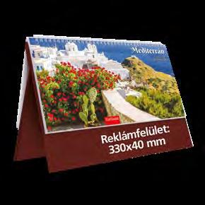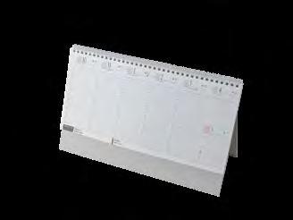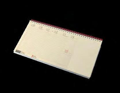 Ikerspirállal összefűzött fekvő naptárak heti beosztással, színes műbőrrel borított borítóval. Egyediesítés: présfólia, vaknyomás, szita. Reklámfelület a tartó hátsó oldalán 320x50mm.
