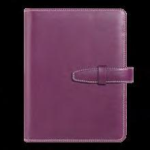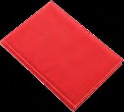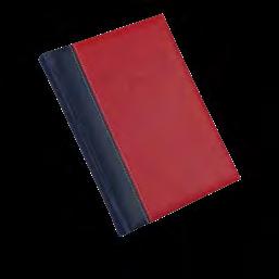 Puha tapintású, hőre színeződő matt műbőr, világos varrással, jelölőszalaggal és sarokperforációval. Egyediesítés: présfólia, vaknyomás, fémsarok (arany/ezüst)